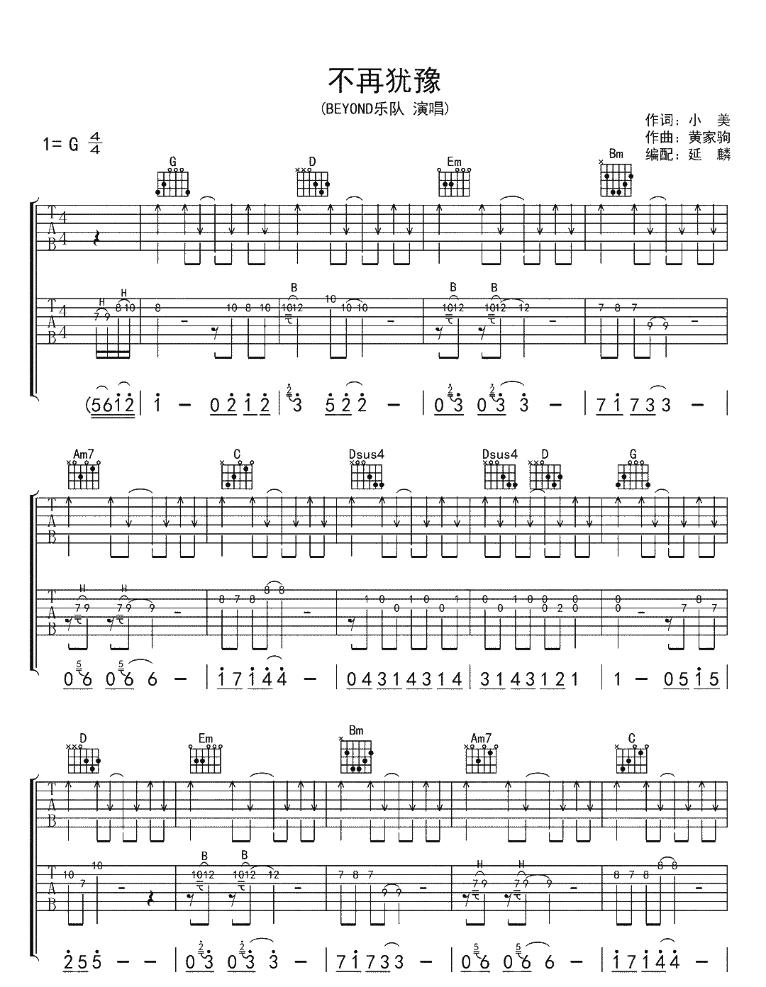 不再犹豫吉他谱 - Beyond - G调吉他弹唱谱