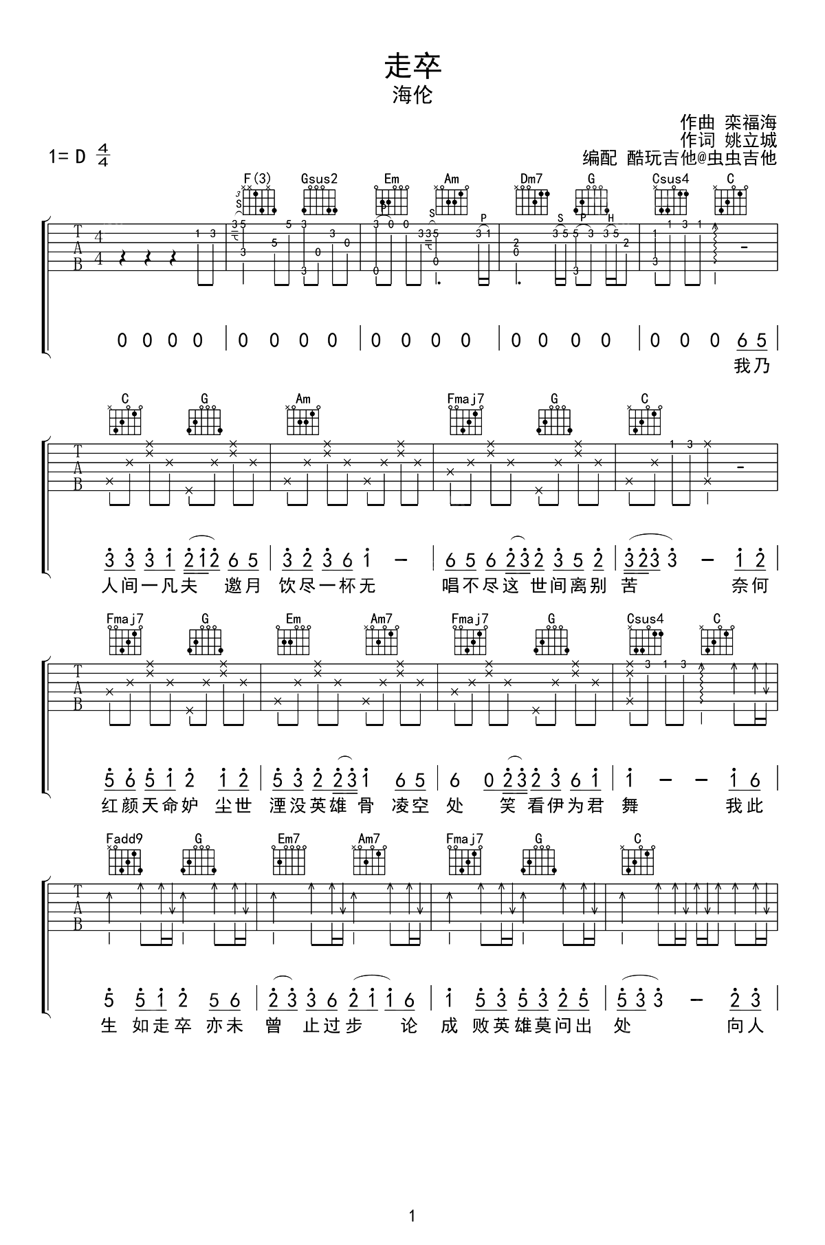 走卒吉他谱 - 海伦 - D调吉他弹唱谱 - 原版