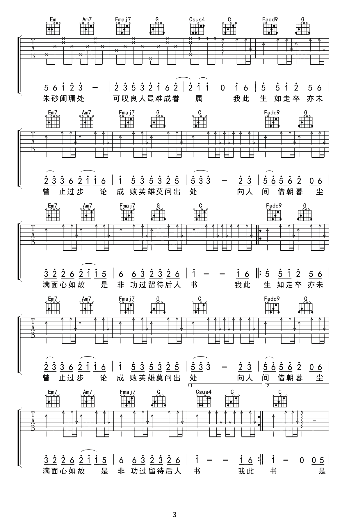 当前位置:琴谱网>吉他弹唱>走卒
