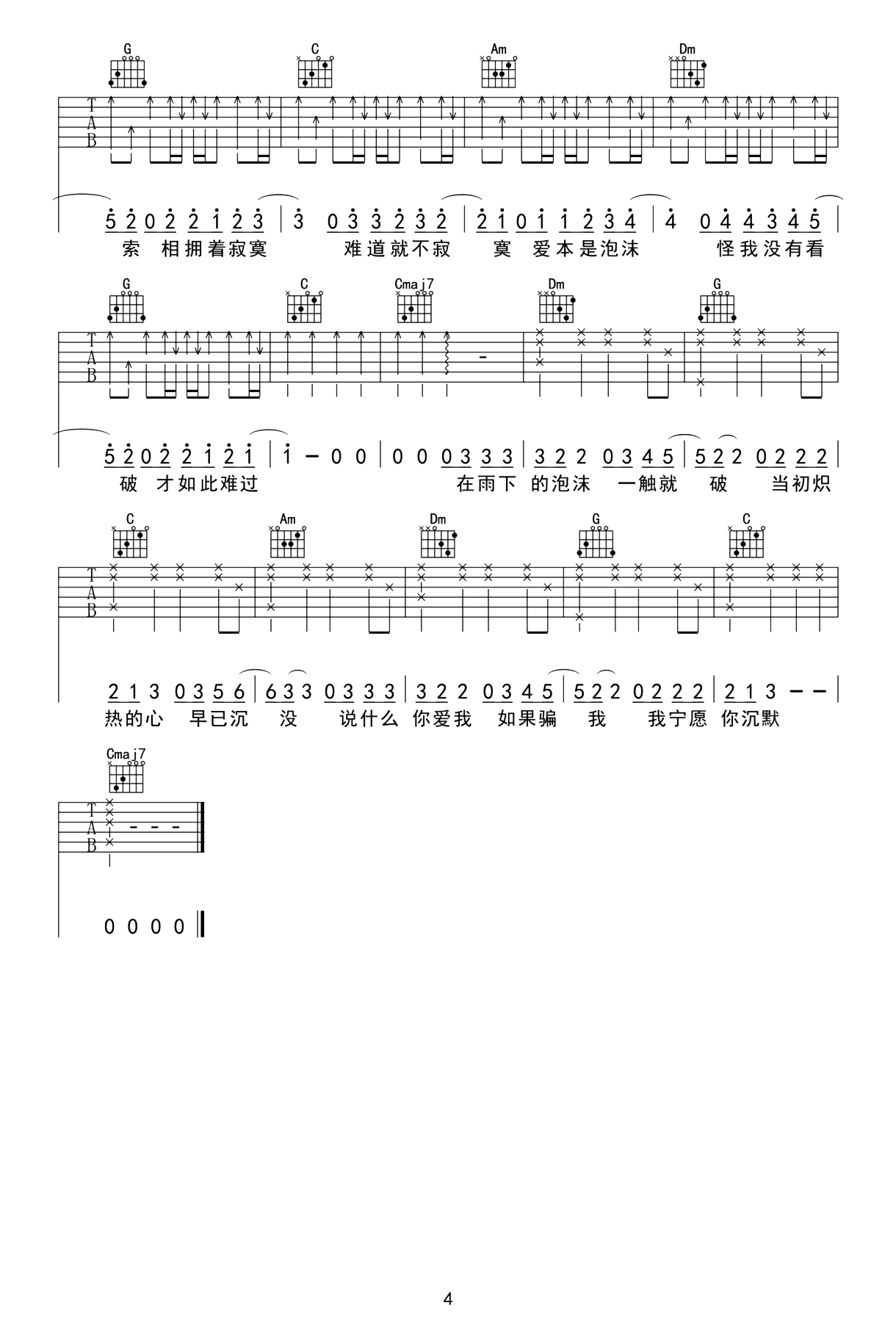 当前位置:琴谱网>吉他弹唱>泡沫