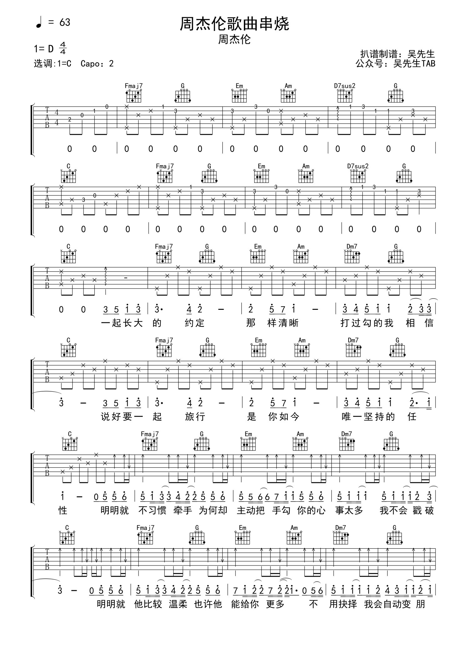 • 周杰伦歌曲串烧吉他谱 - 周杰伦 - C调吉他弹唱谱第1张