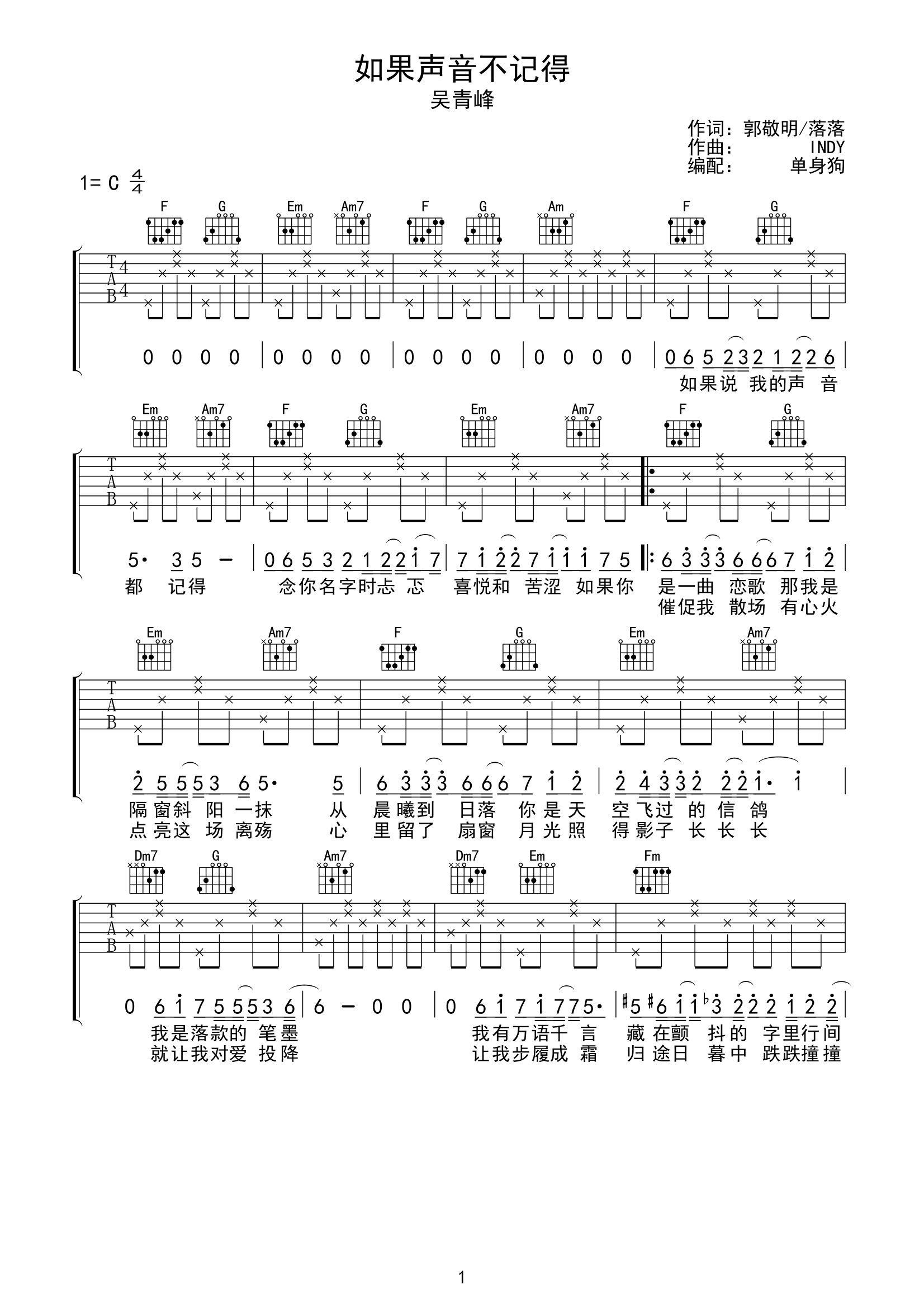 当前位置:琴谱网>吉他弹唱>如果声音不记得