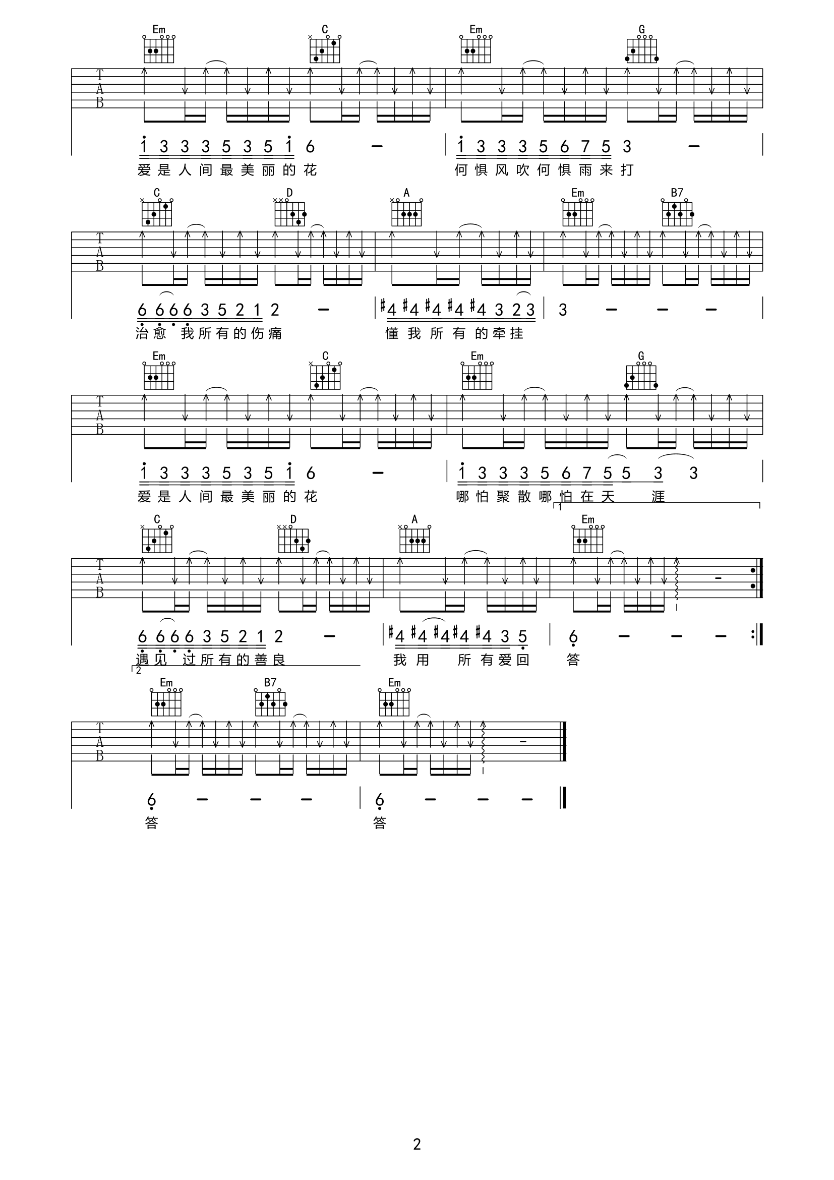 当前位置:琴谱网>吉他弹唱>爱是人间最美丽的花