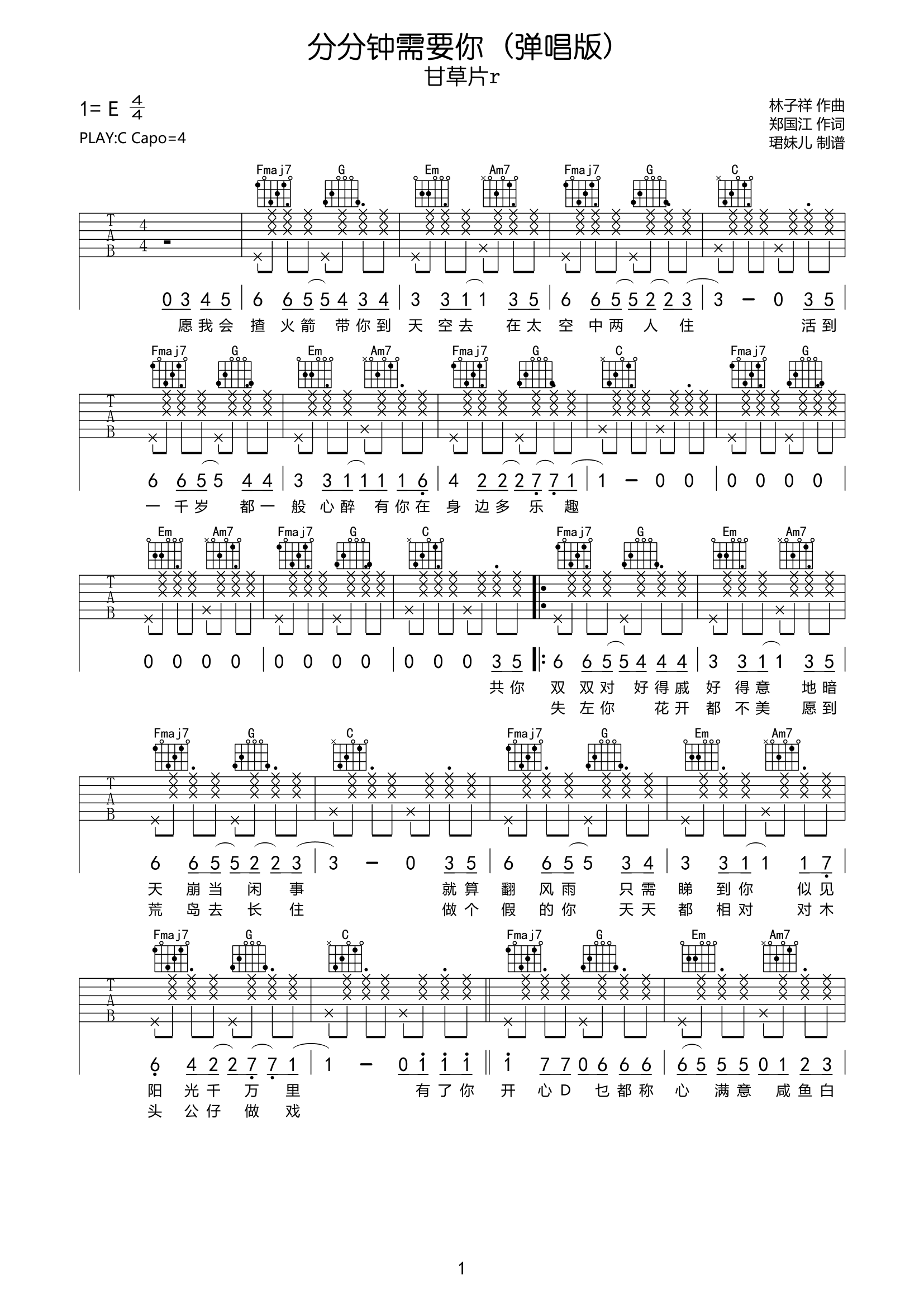 分分钟需要你吉他谱 - 甘草片r - C调吉他弹唱谱 - 原版