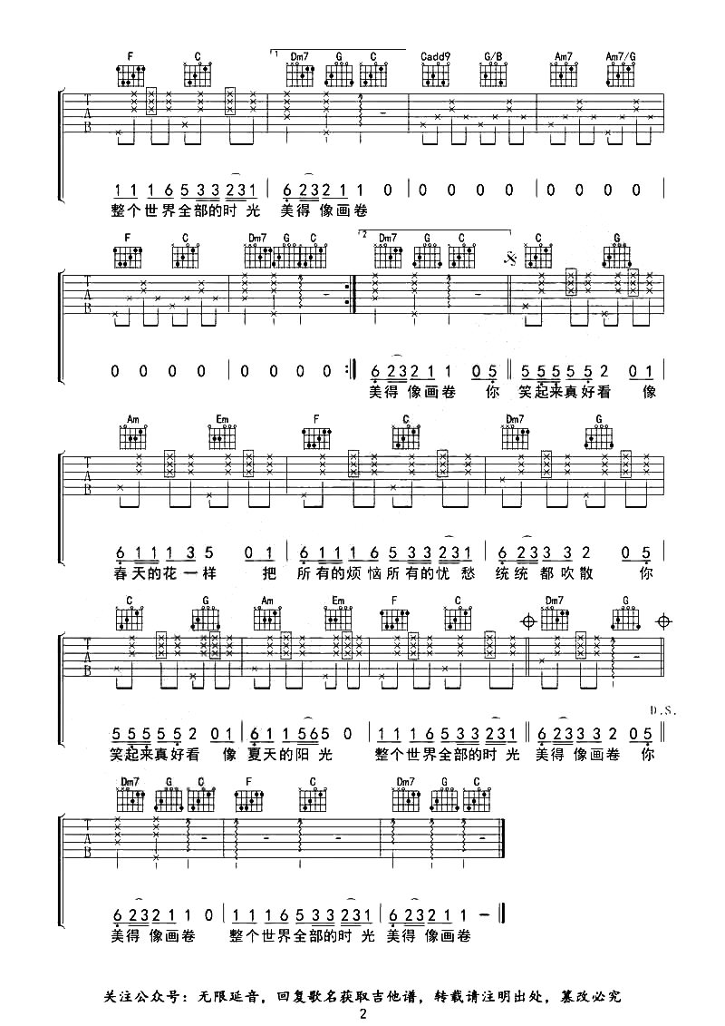 当前位置:琴谱网>吉他弹唱>你笑起来真好看