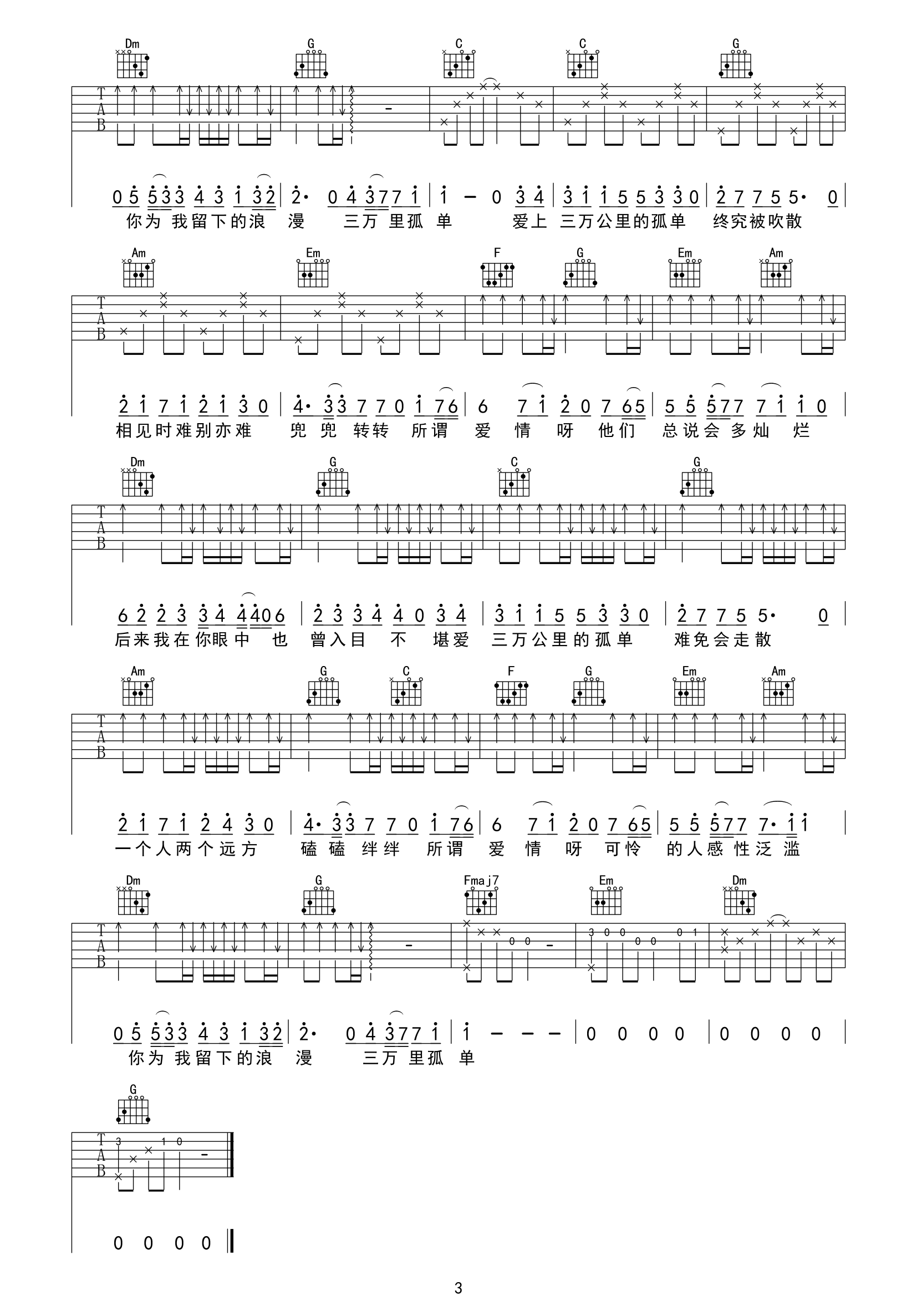 当前位置:琴谱网>吉他弹唱>三万公里的孤单