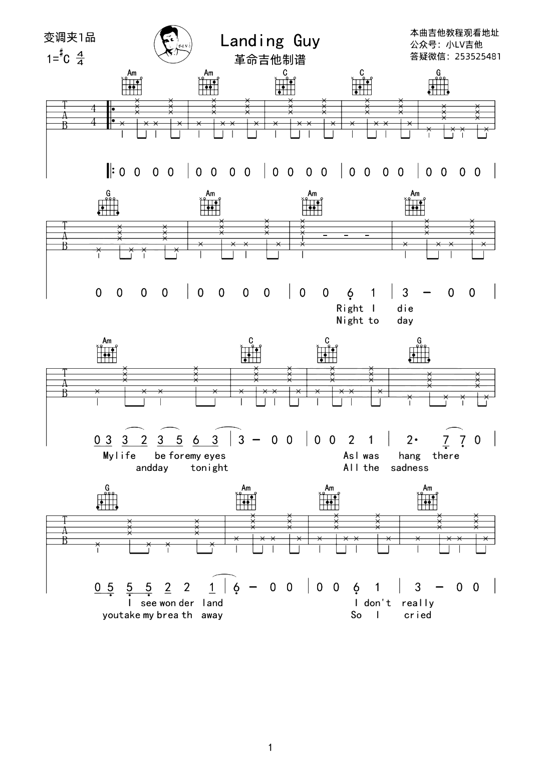 Landing Guy吉他谱 - Landing - C调吉他弹唱谱
