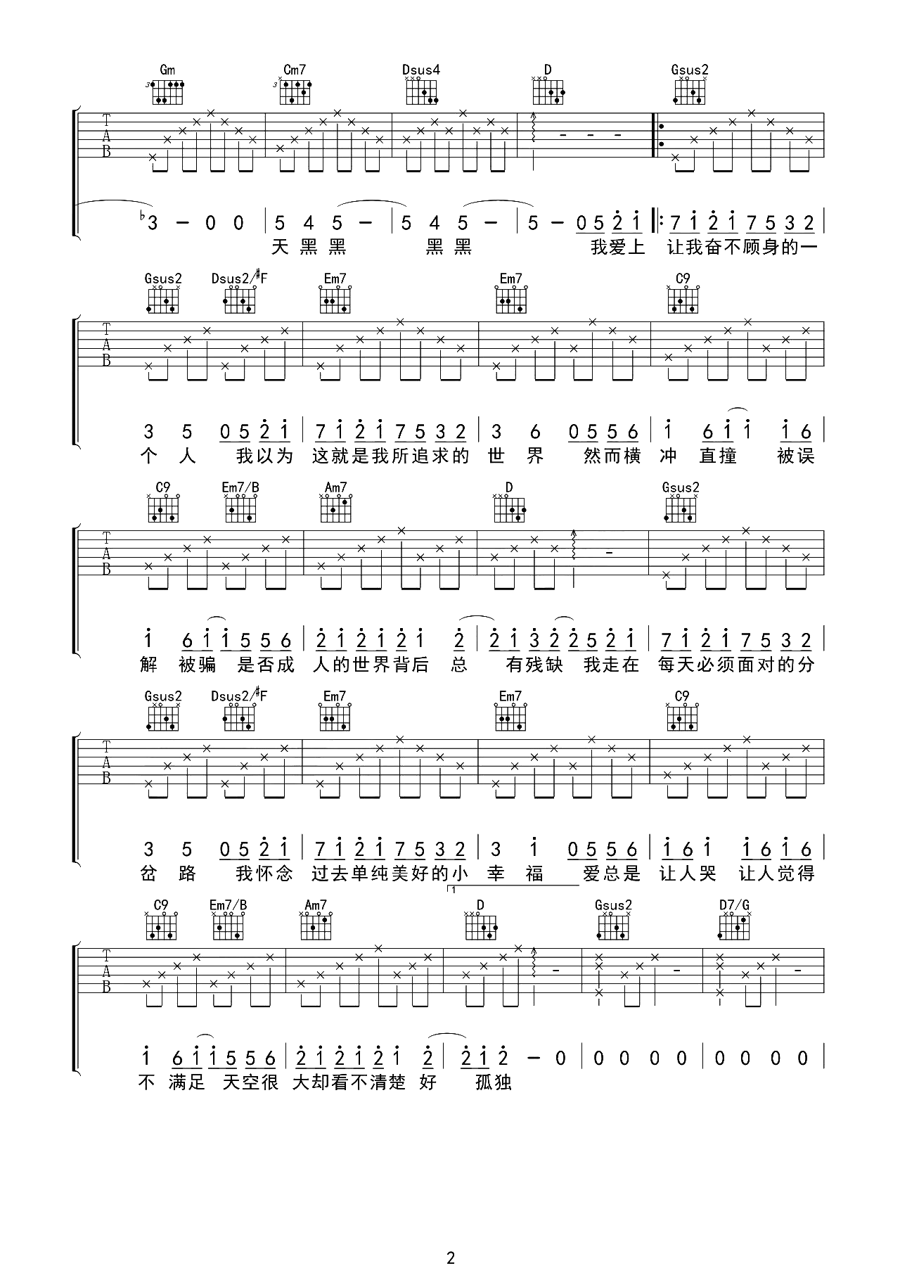 当前位置:琴谱网>吉他弹唱>天黑黑