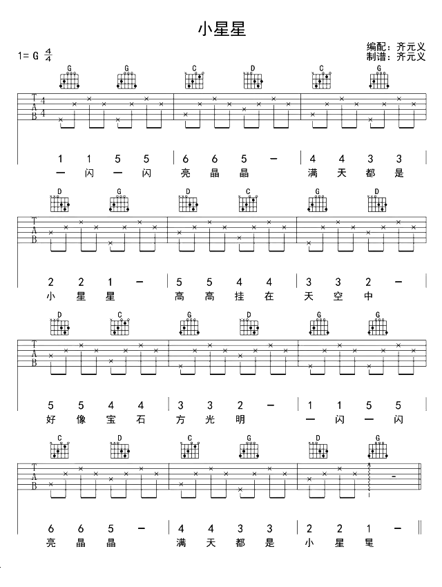 小星星吉他谱 - 经典儿歌 - G调吉他弹唱谱