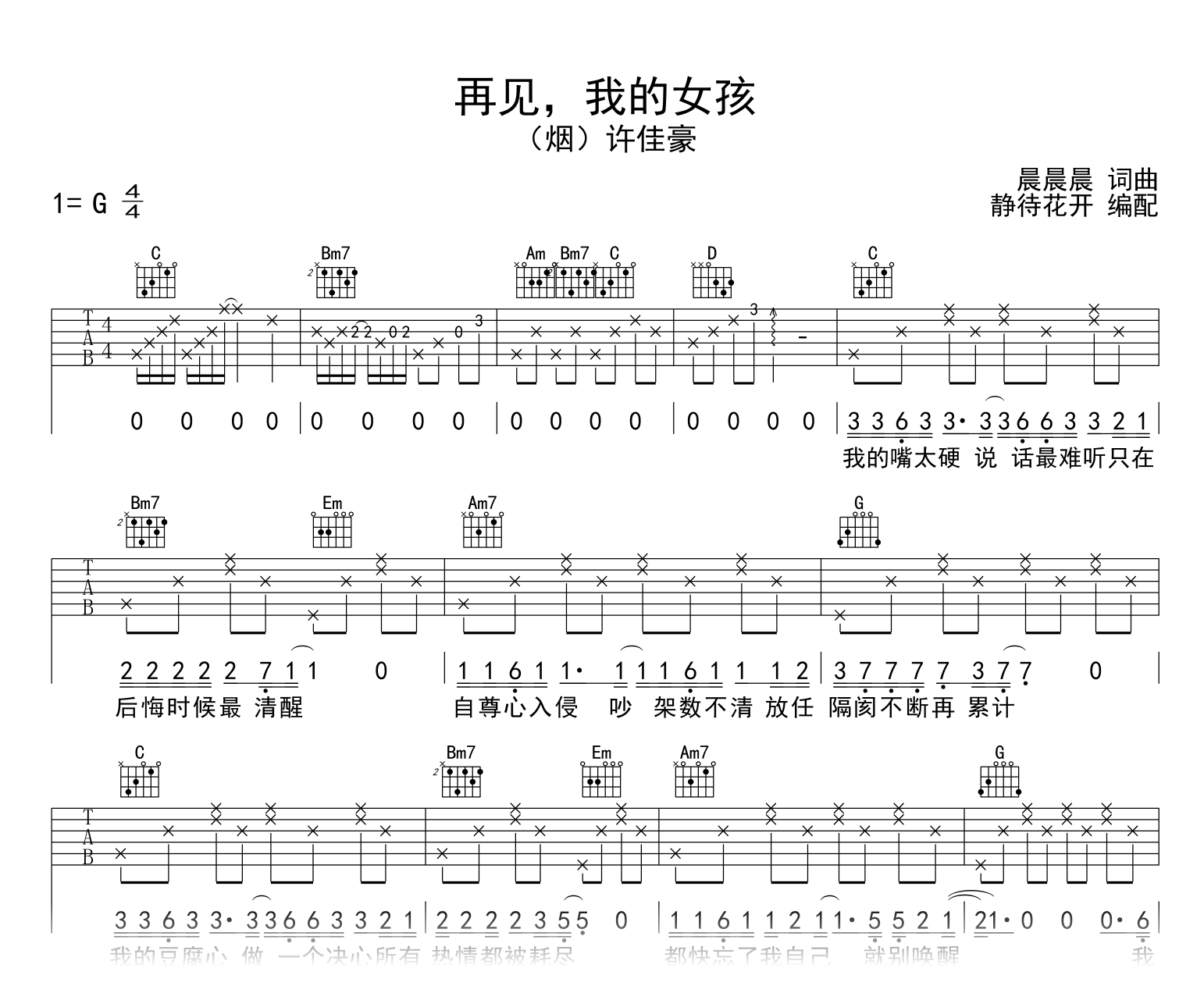 再见 我的女孩吉他谱 - 再见 - G调吉他弹唱谱