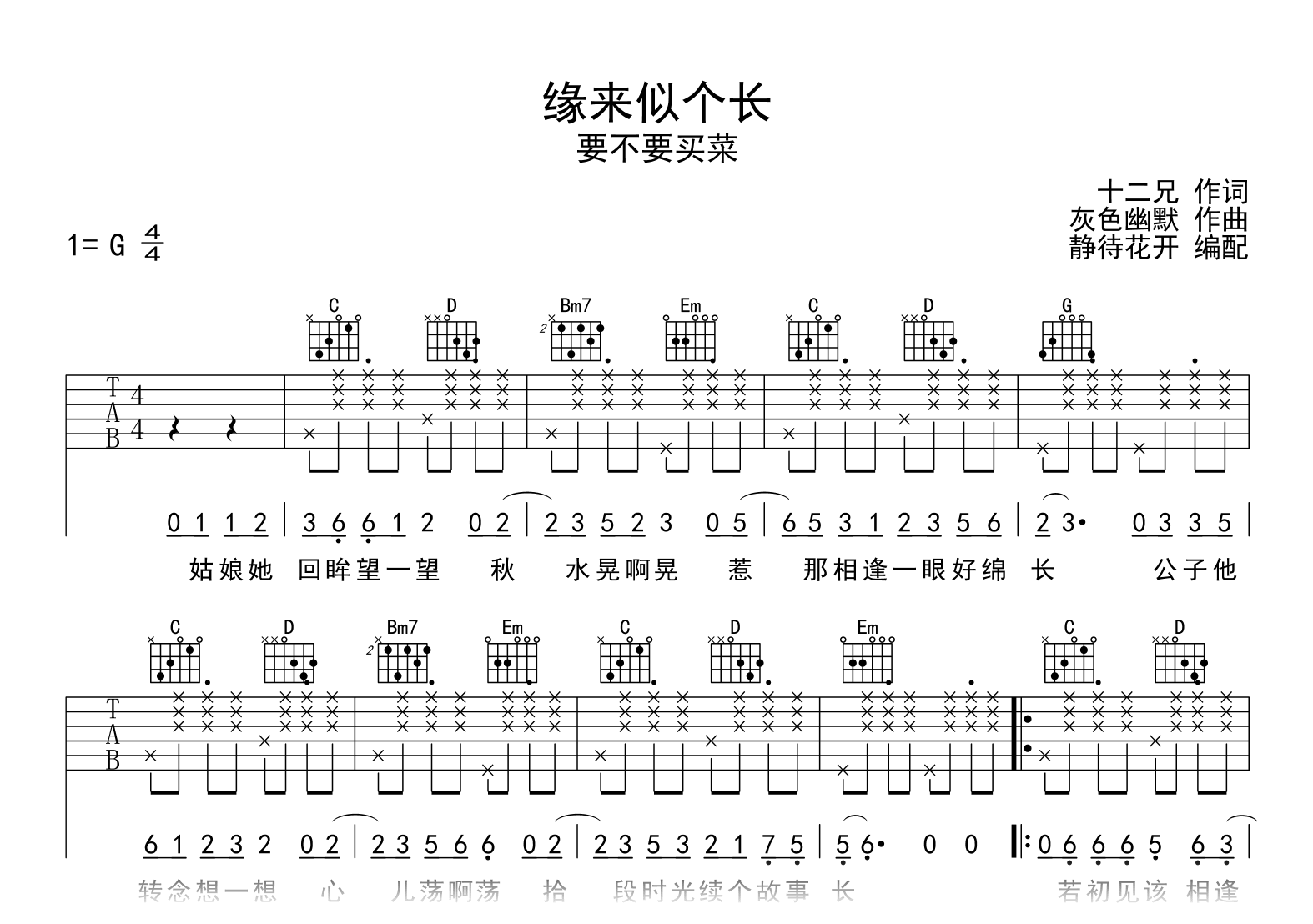 缘来似个长吉他谱 - 要不要买菜 - G调吉他弹唱谱