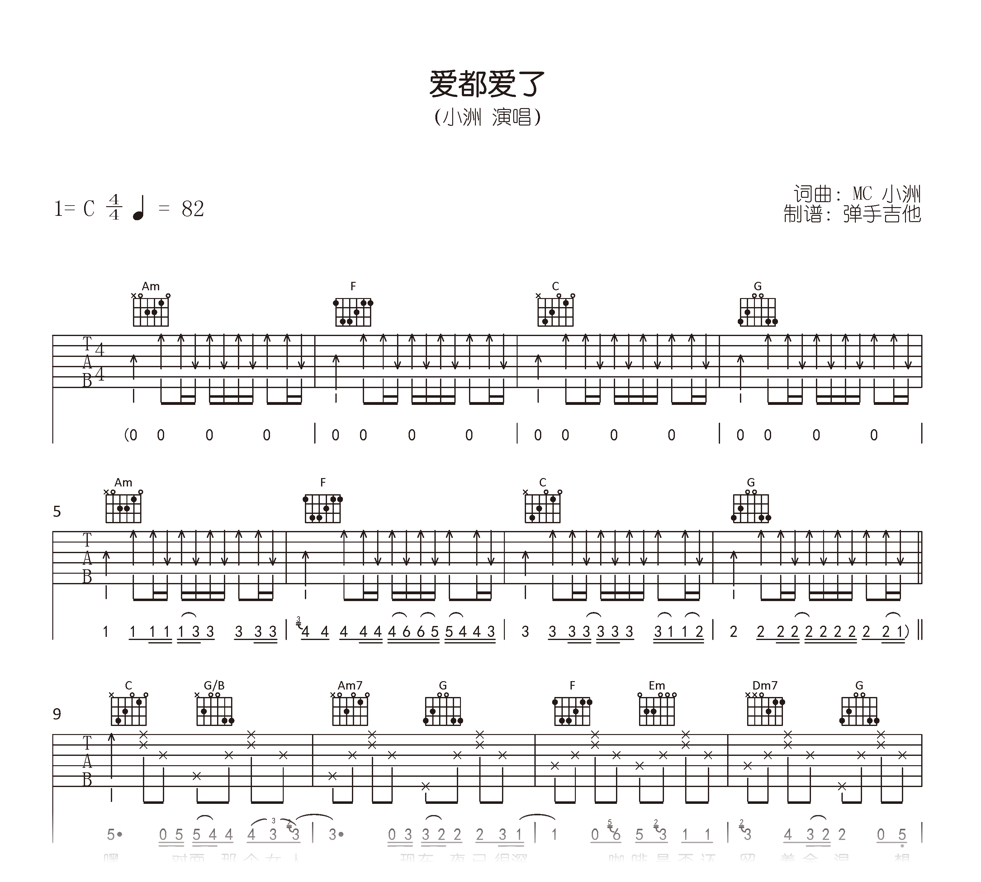 爱都爱了吉他谱 - 小洲 - C调吉他弹唱谱 - 原版