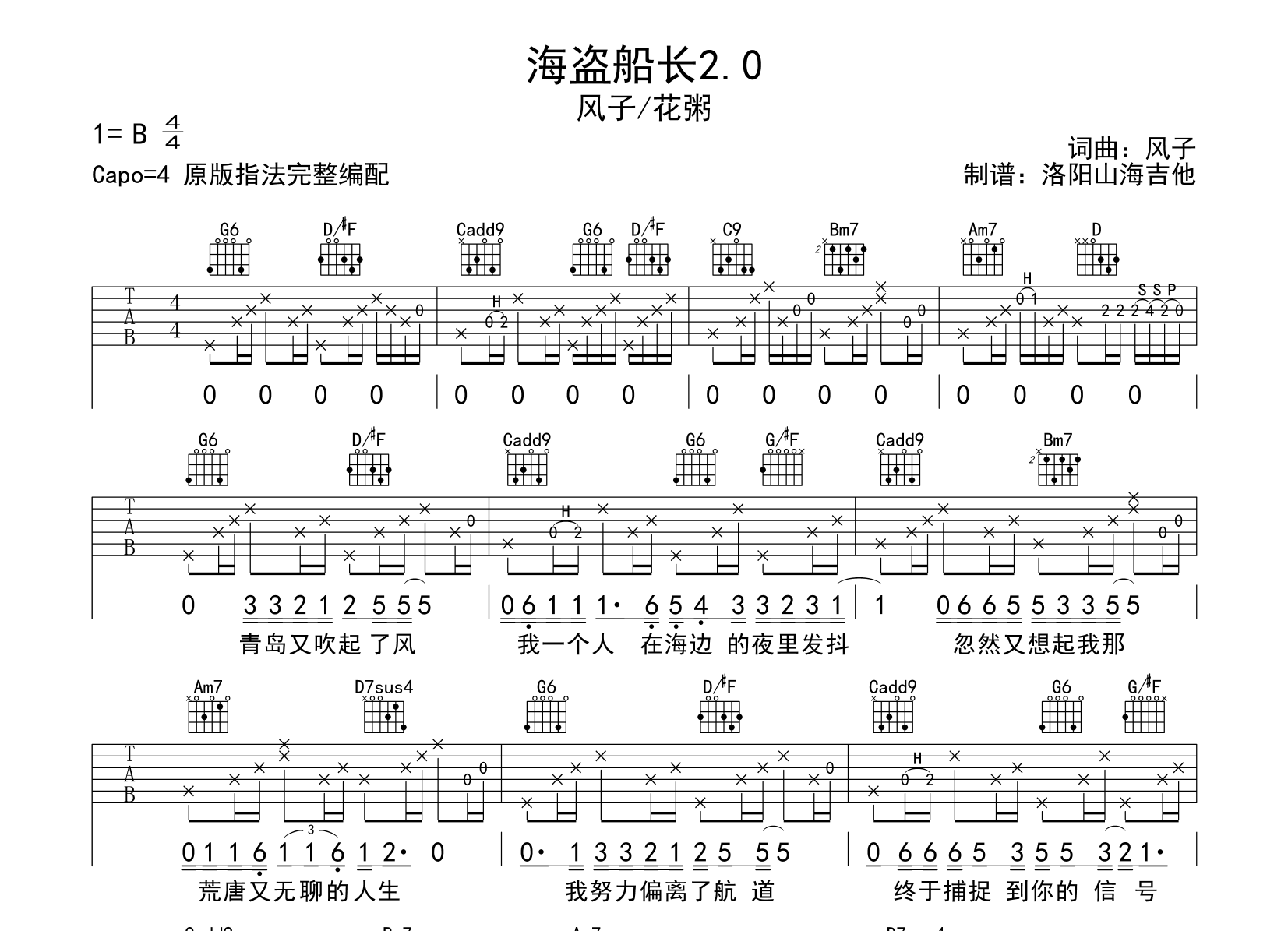 海盗船长2.0吉他谱 - 风子/花粥 - 吉他弹唱谱