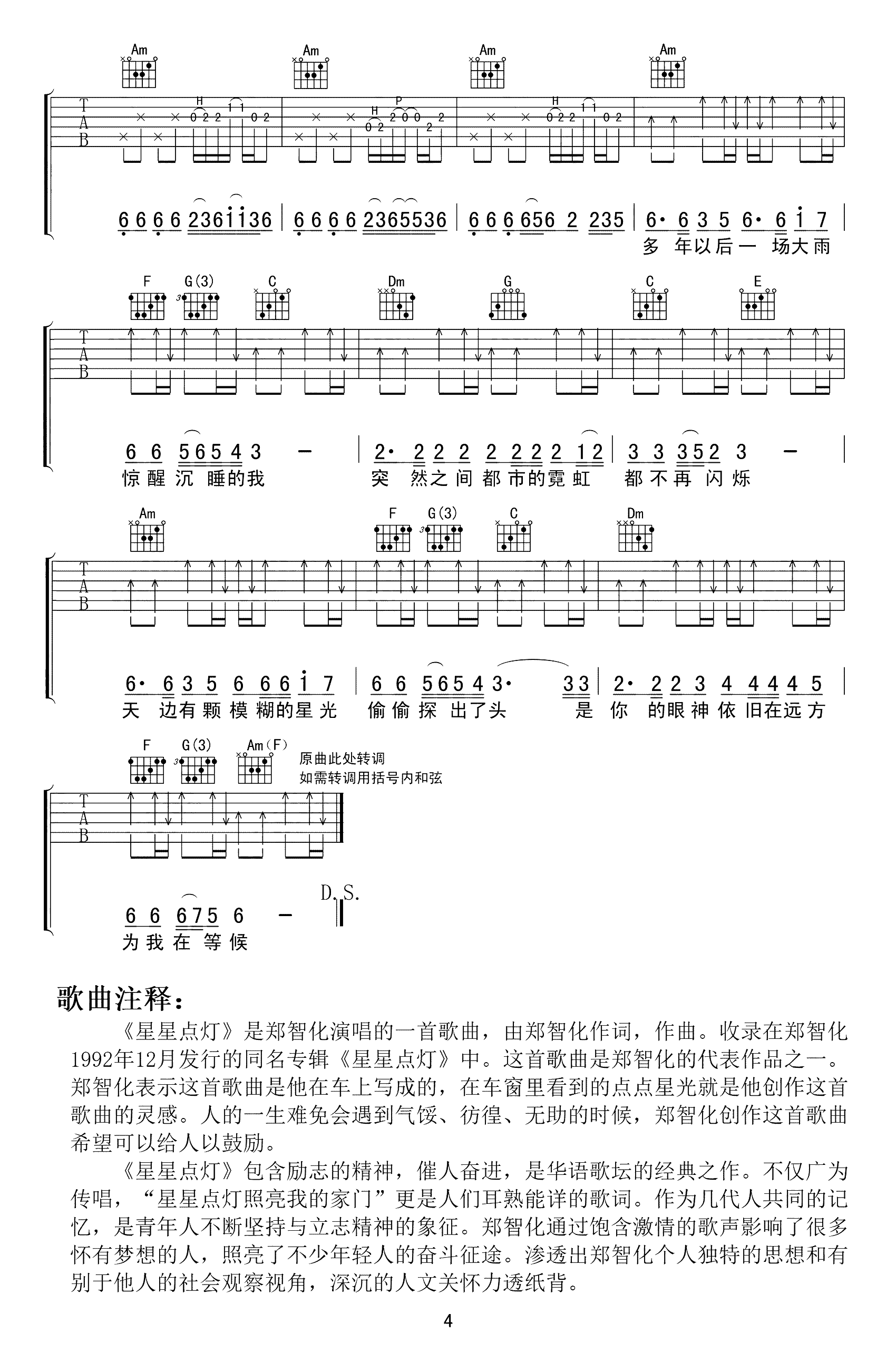 星星点灯吉他谱 - 郑智化 - C调吉他弹唱谱