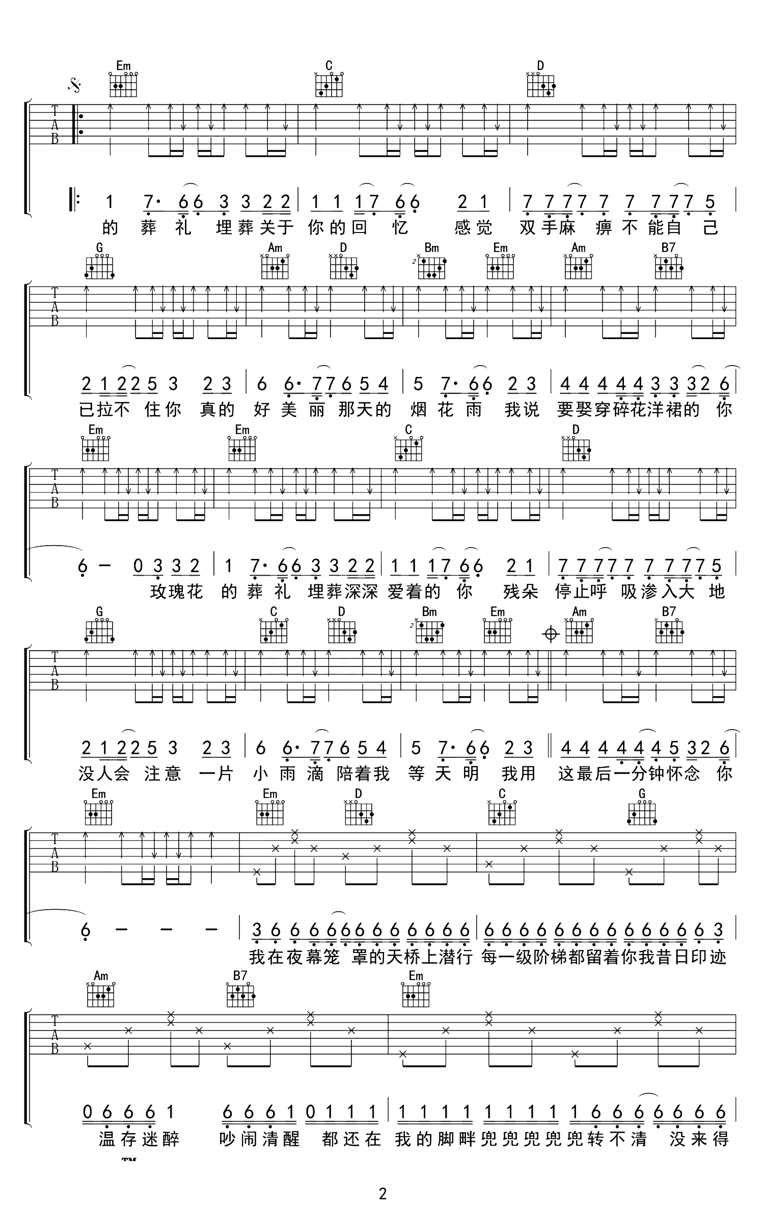 当前位置:琴谱网>吉他弹唱>玫瑰花的葬礼