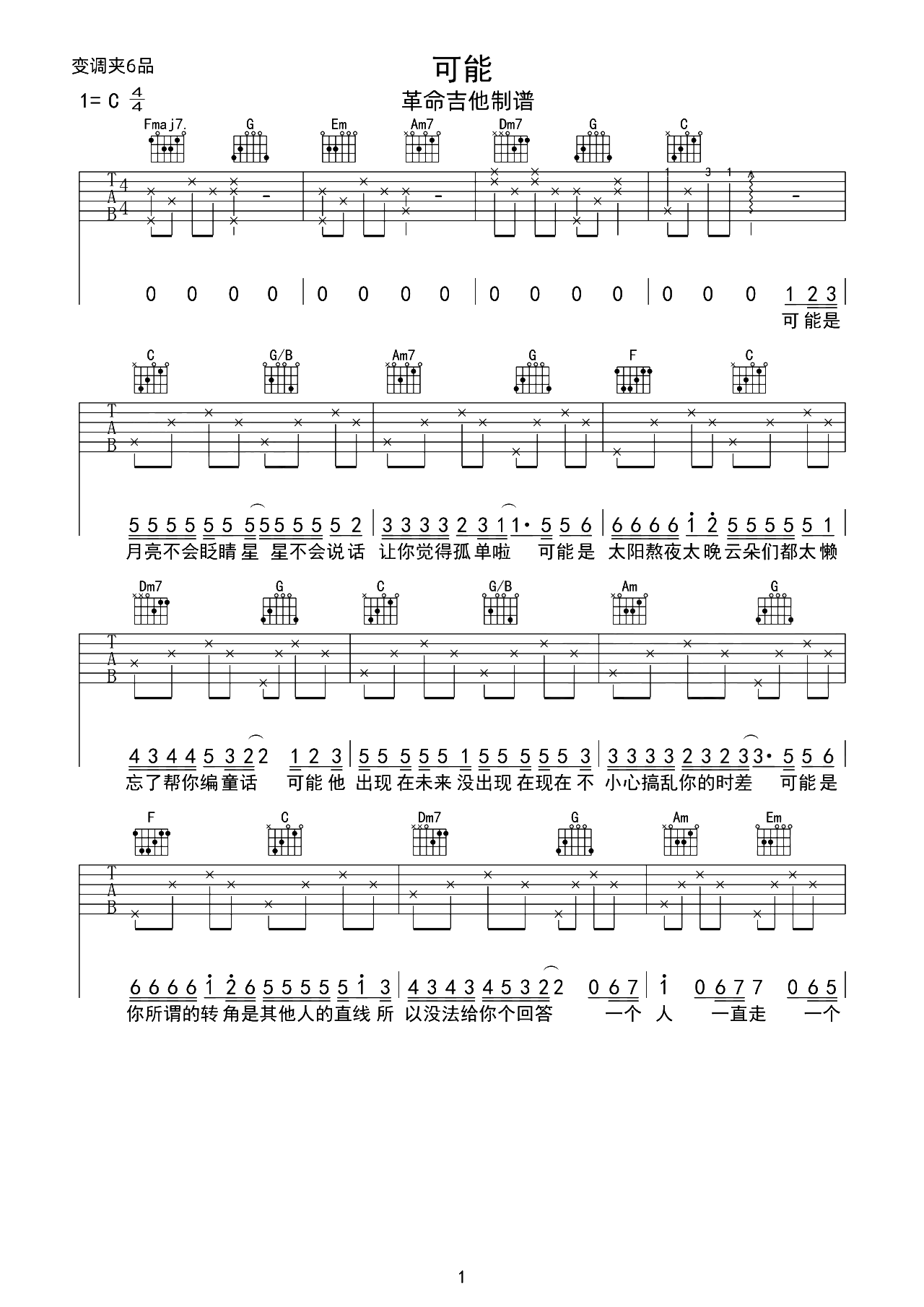 当前位置:琴谱网>吉他弹唱>可能