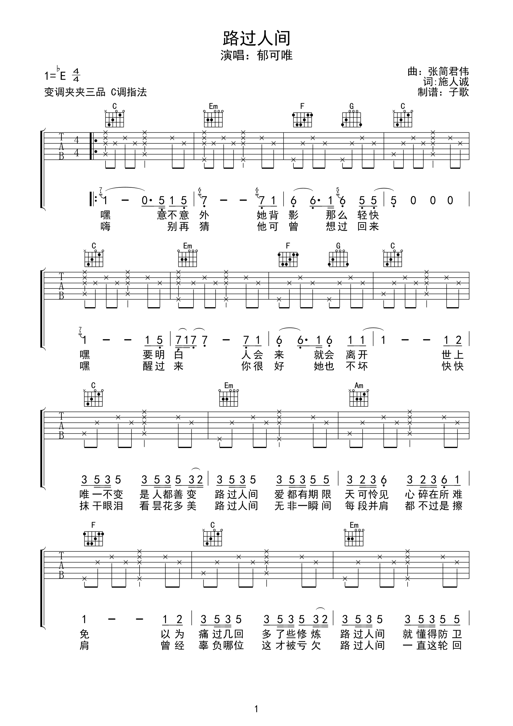 路过人间吉他谱 - 郁可唯 - C调吉他弹唱谱