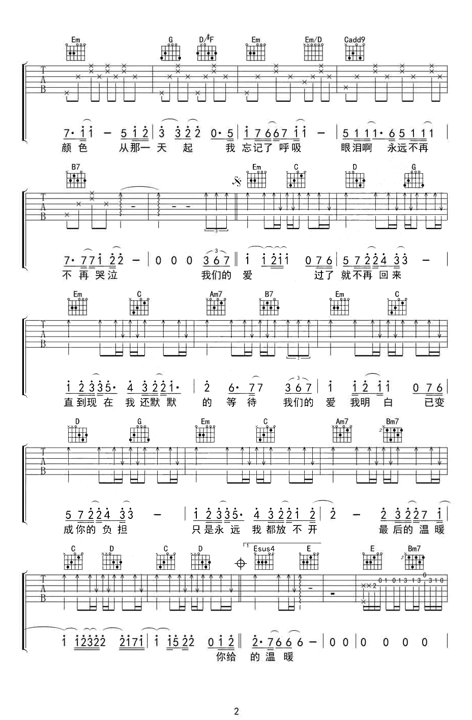 曲谱介绍: 我们的爱吉他谱,飞儿乐团巅峰时期的一首悲伤情歌,詹雯婷所在的时候,这首歌给了难以代替的高度,“我们的爱”仿佛唱着有些人内心中深爱而不得的感伤,旋律层层递进,画面感着实壮阔。 《我们的爱》吉他弹唱谱,由无限延音制谱,选用G调指法,原调bA,本谱含完整前奏较为接近原版,难度初级简单,弹唱时建议变调夹夹1品即可,本谱共3张图片谱。