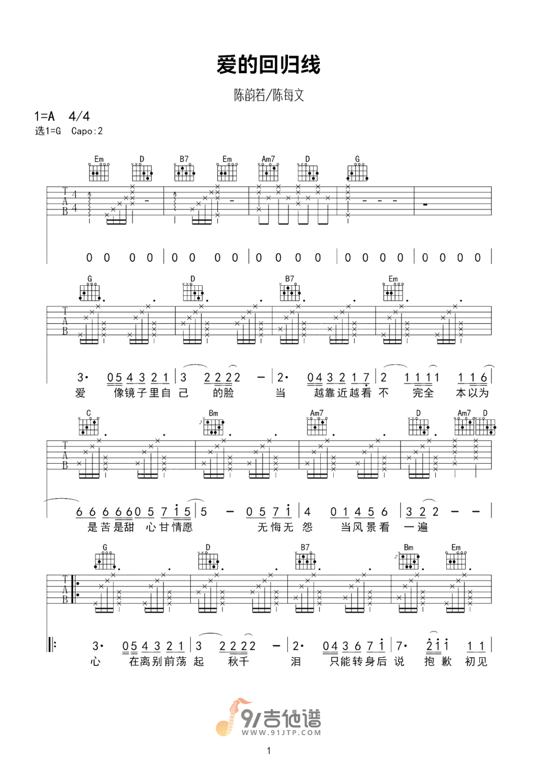 当前位置:琴谱网>吉他弹唱>爱的回归线