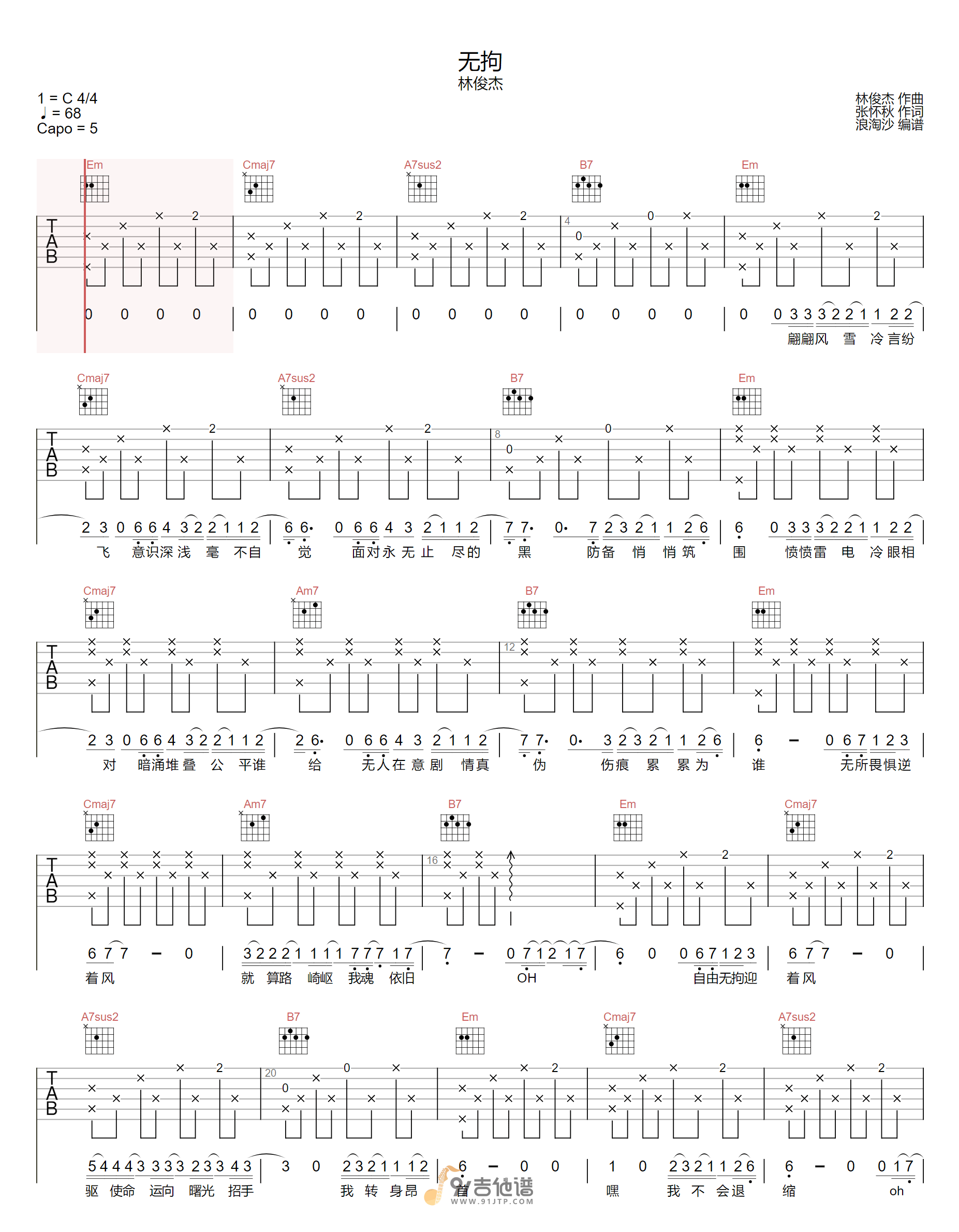 无拘吉他谱 - 林俊杰 - G调吉他弹唱谱 - 原版