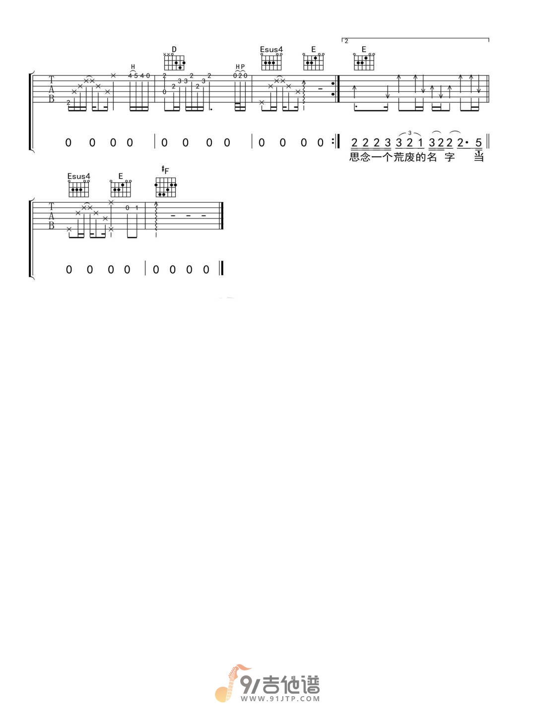 当前位置:琴谱网>吉他弹唱>思念一个荒废的名字