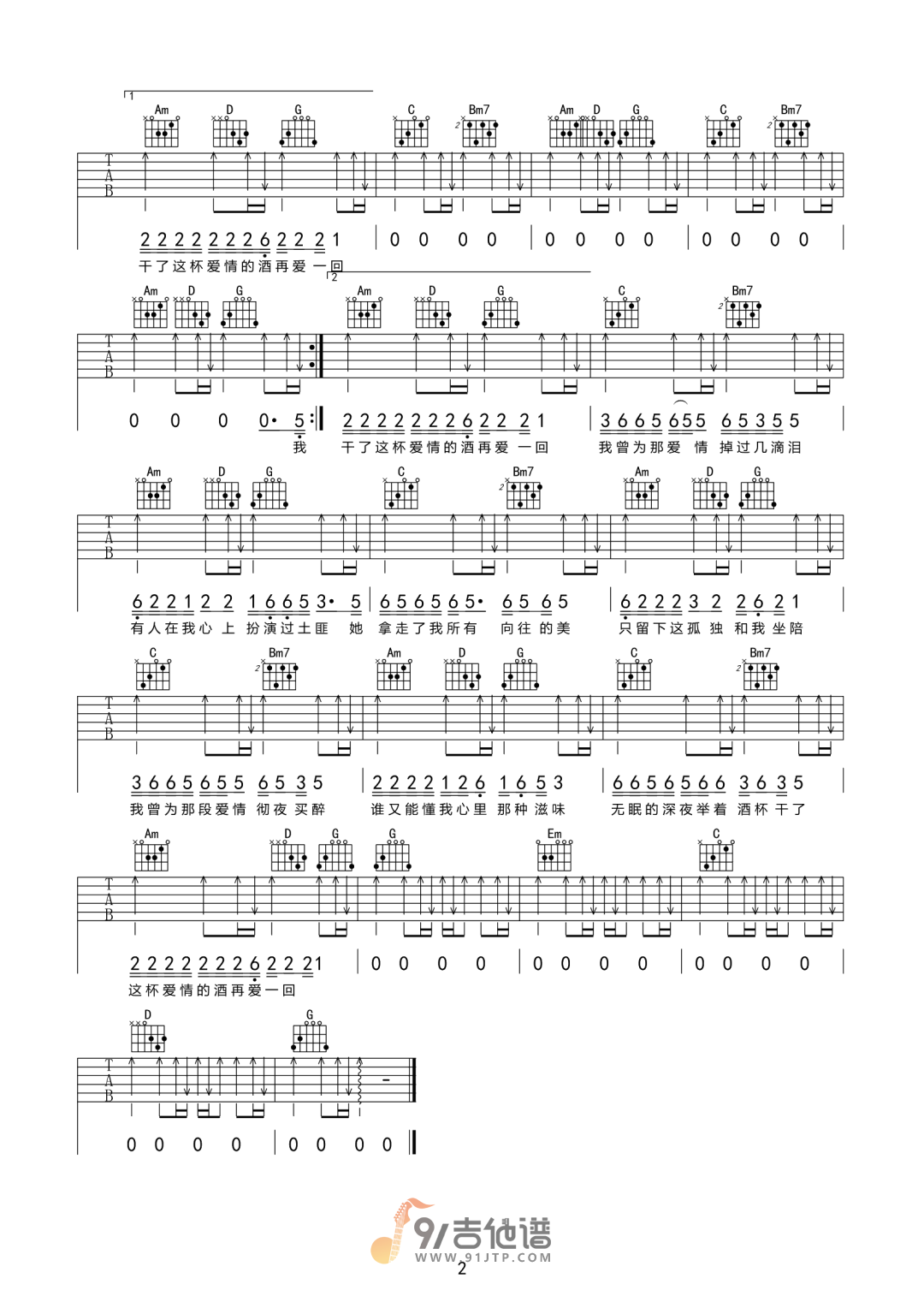 曲谱介绍: 曲谱简介:我为爱情掉过几滴泪吉他谱,杨小壮演唱的一首歌曲,4/4拍的节奏,这首歌曲的原调为降A调,这里曲谱采用了G调指法进行编配,演唱时夹变调夹1品可回到原调,也可根据个人实际嗓音情况选择。曲谱由琴谱网更新上传,共2张高清图片弹唱吉他谱例,曲谱来源于网络转载,编配制谱者暂不详。