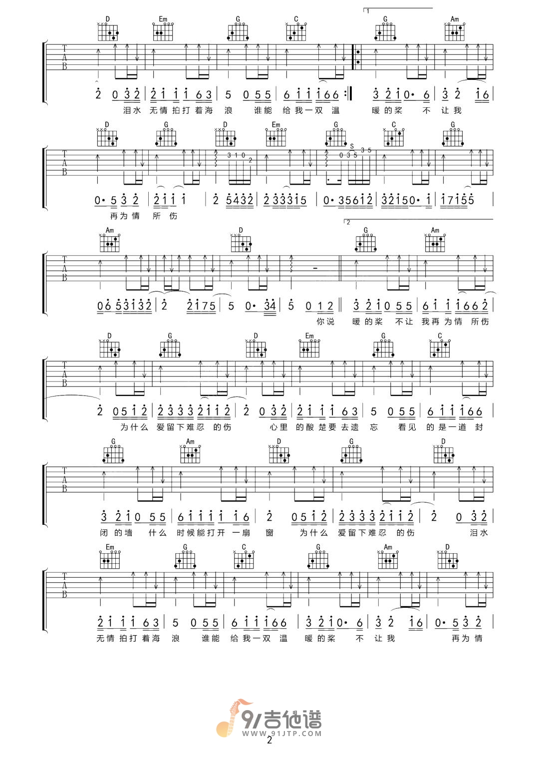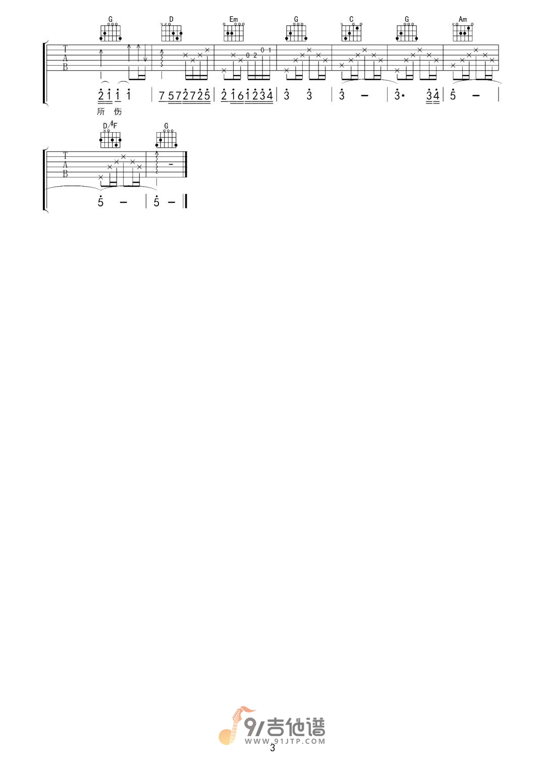当前位置:琴谱网>吉他弹唱>为情所伤