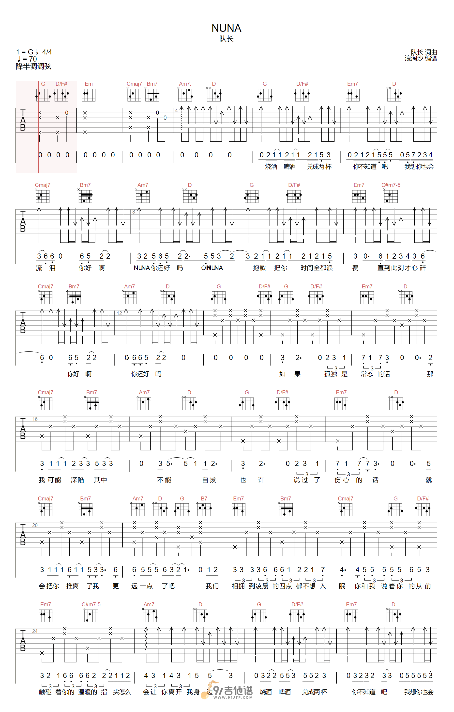 NUNA吉他谱 - 队长 - G调吉他弹唱谱 - 原版