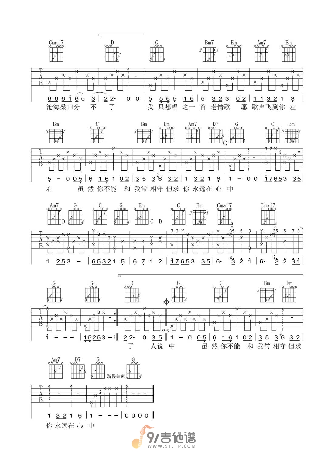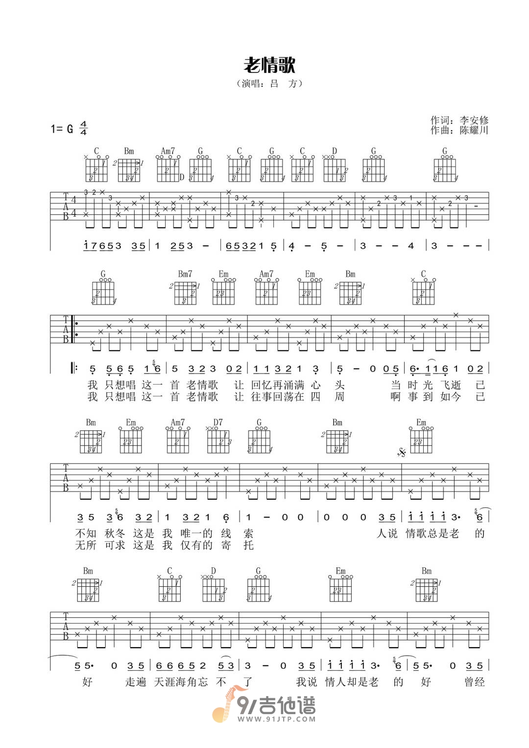老情歌吉他谱 - 吕方 - G调吉他弹唱谱 - 原版