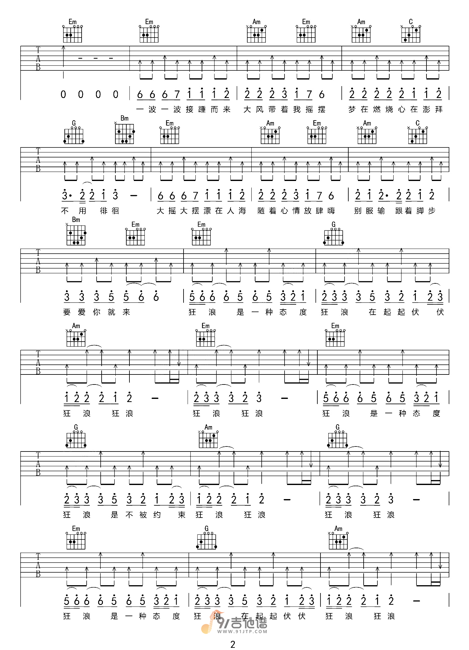 狂浪吉他谱 - 花姐 - G调吉他弹唱谱 - 原版