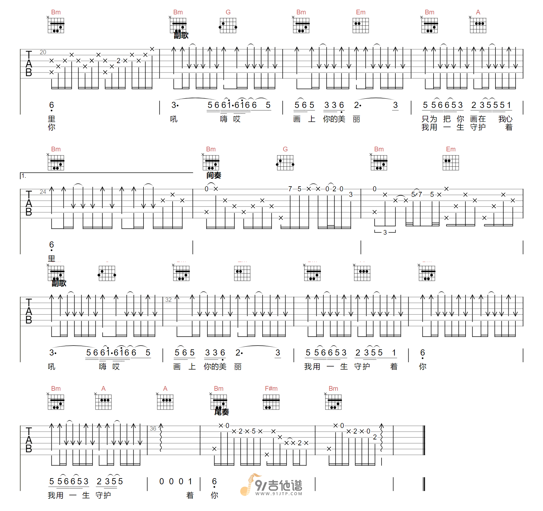 当前位置:琴谱网>吉他弹唱>画你