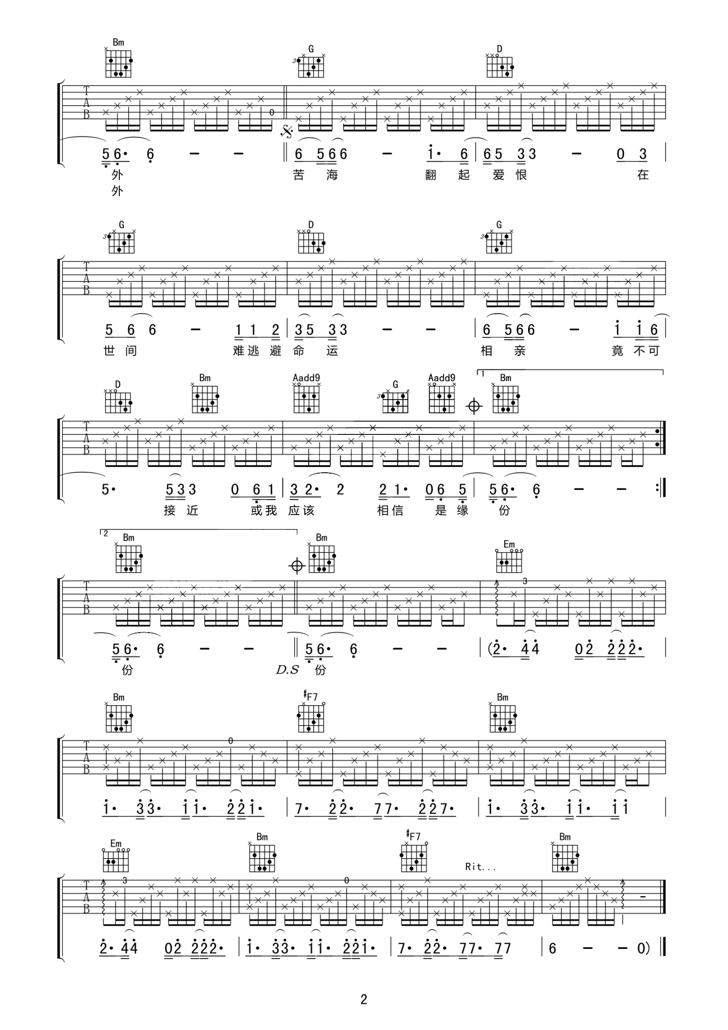 吉他弹唱D调来源:JTSJ19418 浏览2019-10-23 13:19发布图谱共2页
