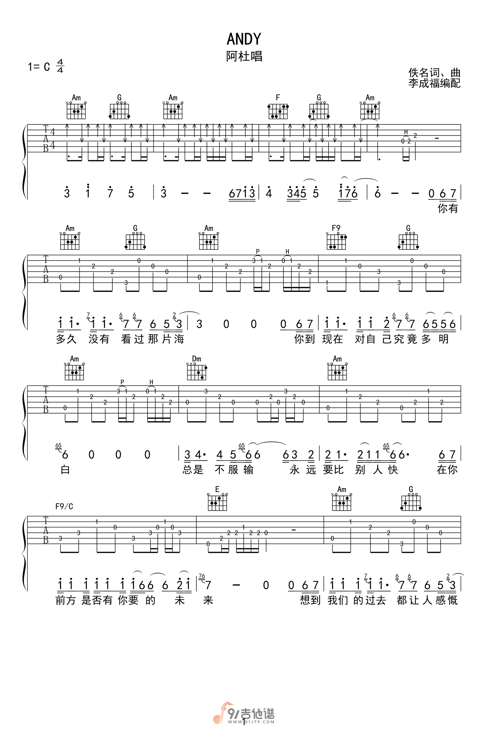 Andy吉他谱 - 阿杜 - C调吉他弹唱谱 - 原版