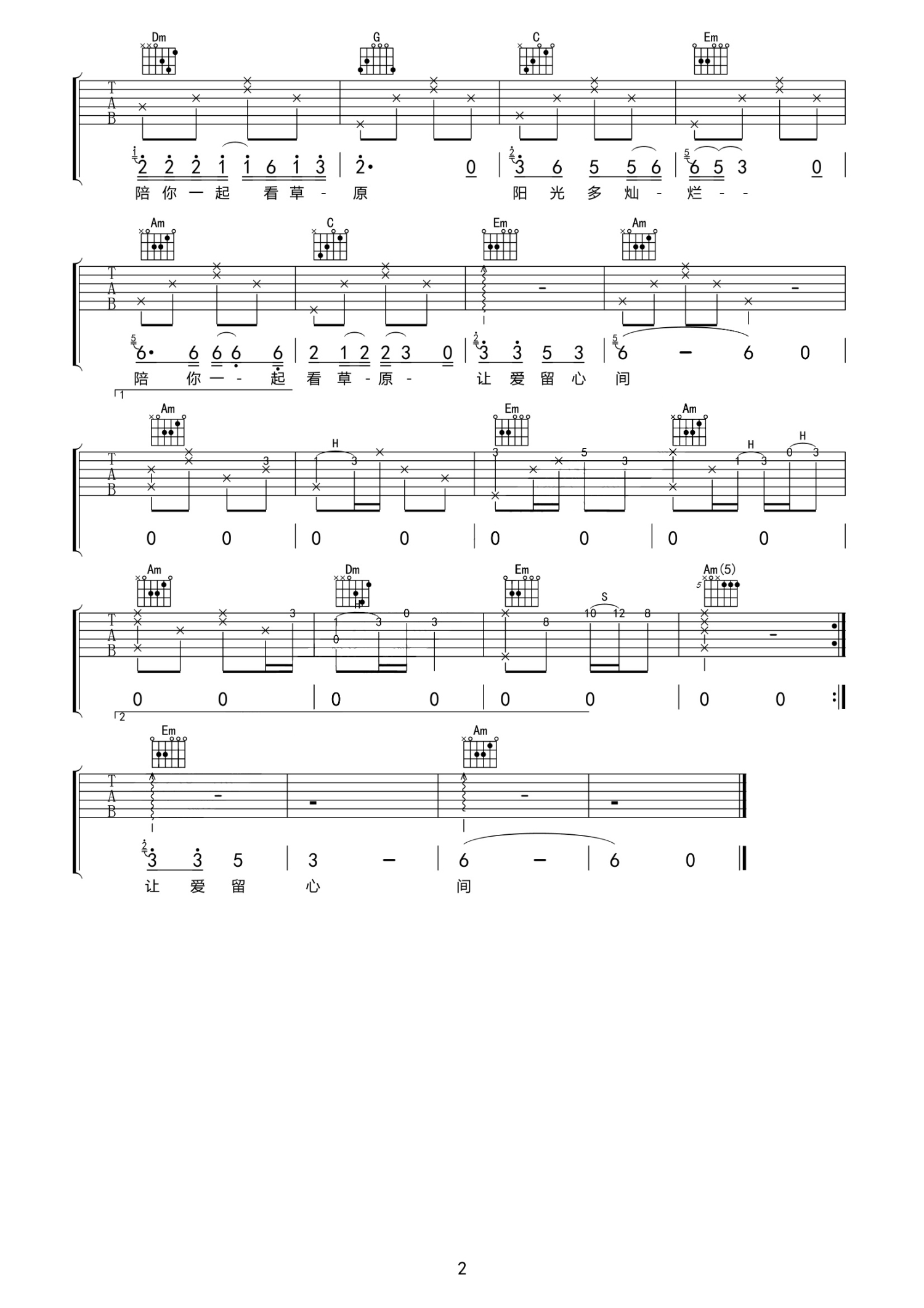 当前位置:琴谱网>吉他弹唱>陪你一起看草原