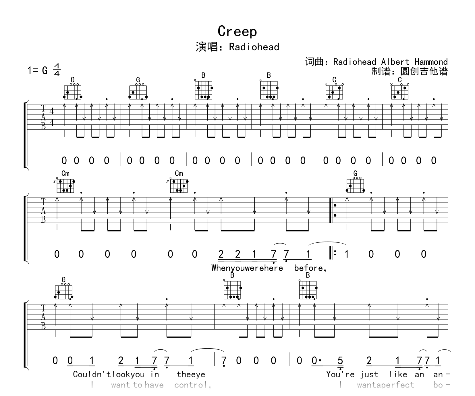 Creep吉他谱 - Radiohead - G调吉他弹唱谱