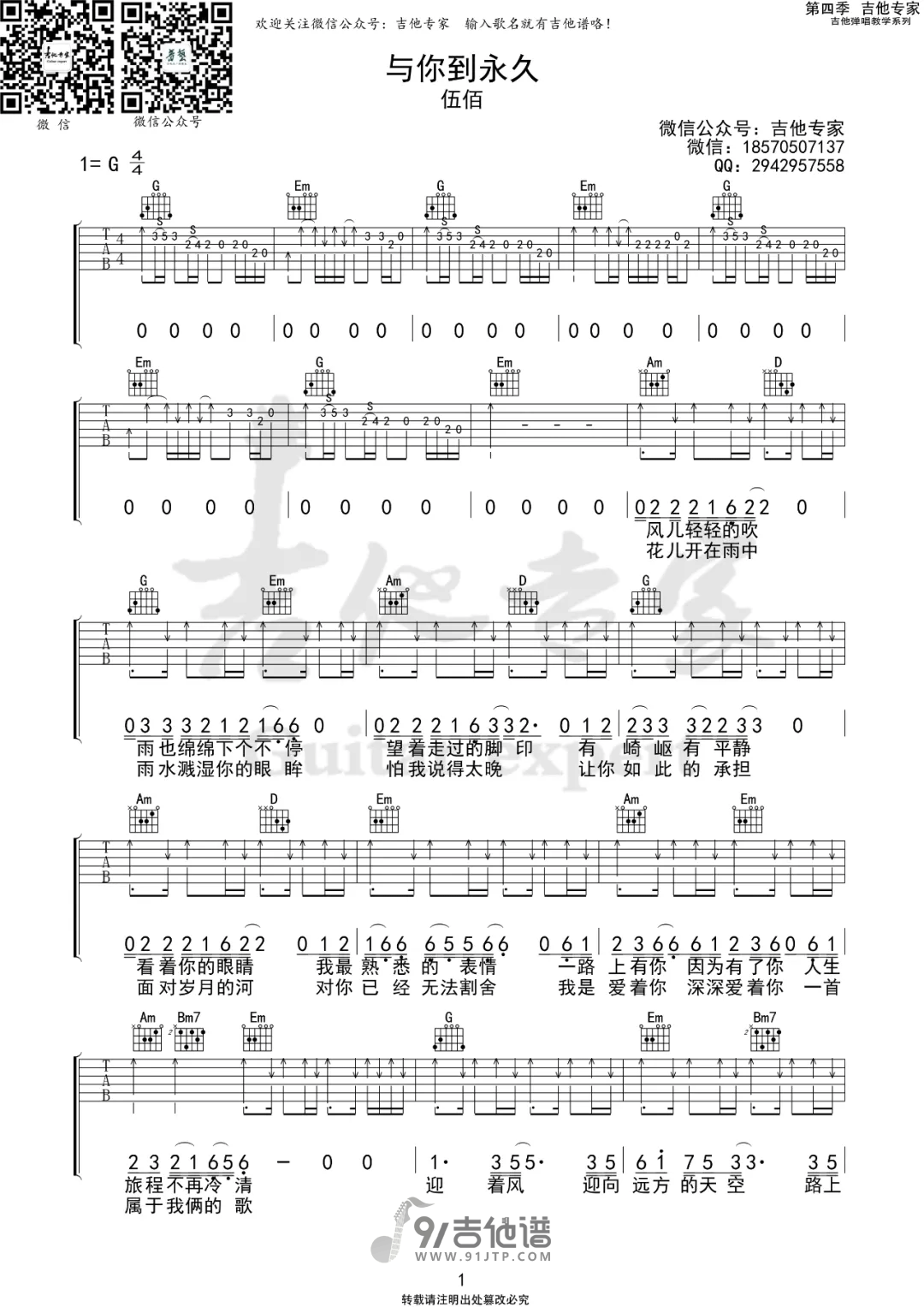 与你到永久吉他谱 - Guitar - G调吉他弹唱谱 - 原版