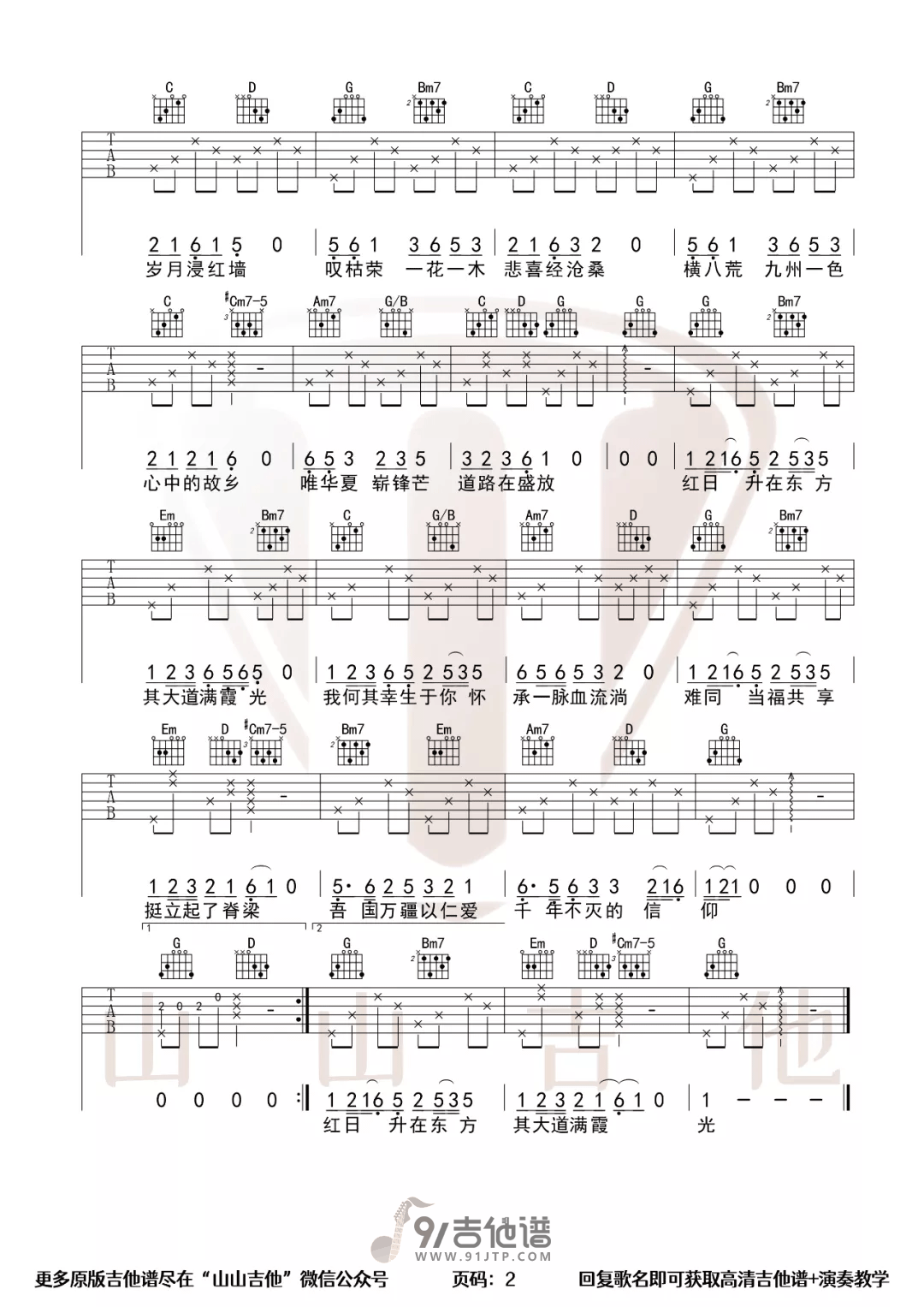 曲谱介绍: 曲谱简介:万疆吉他谱李玉刚弹唱六线谱,《万疆》是由李玉刚演唱的一首国风歌曲,李玉刚听似沉稳的歌声里却饱含深情与敬畏。这首歌来得恰逢其时,唯美大气的词曲里,人们能找到同样的情感共鸣,抒发出胸中质朴真挚的爱国心情。“我何其幸,生于你怀,承一脉血流淌”看似朴素平和的词句,字字直戳心底,自有千钧之力。