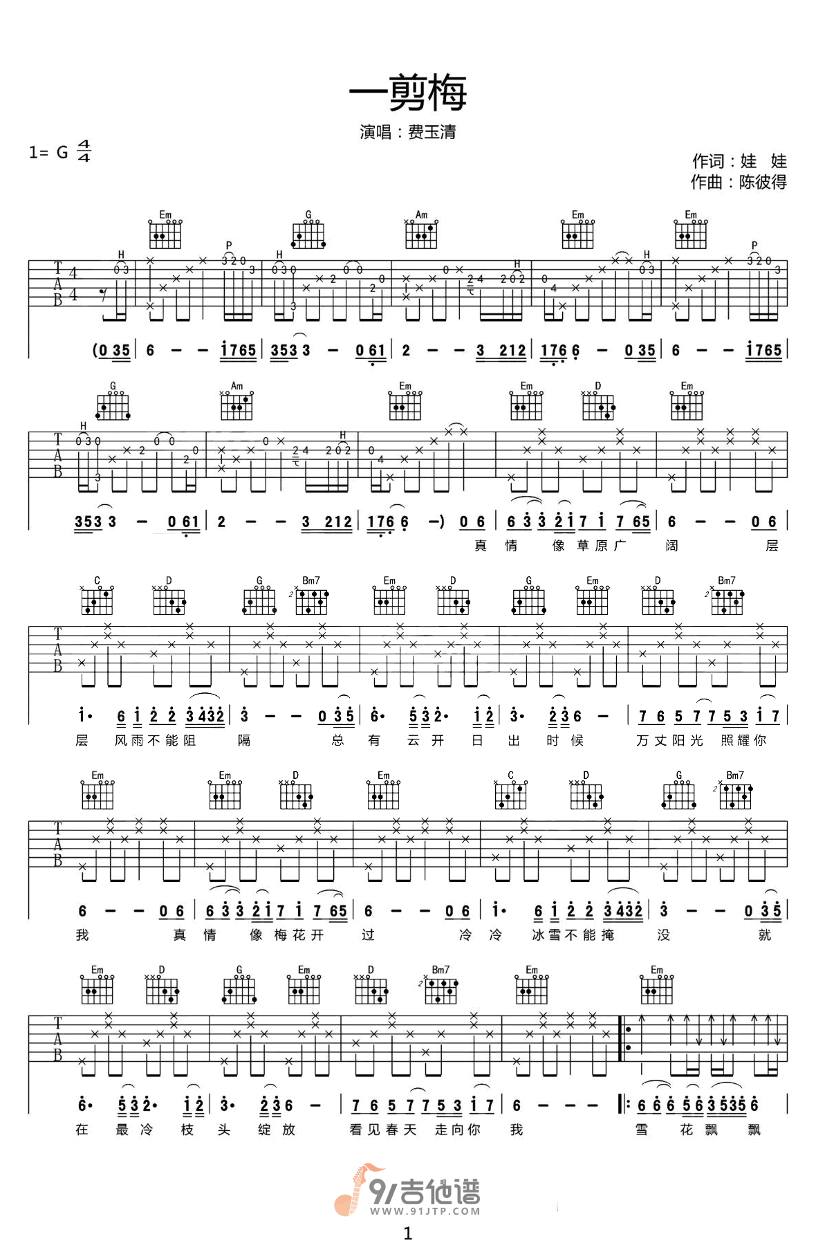 曲谱介绍: 曲谱简介:《一剪梅》吉他谱 费玉清吉他谱,《一剪梅》是由费玉清演唱的一首中国风歌曲,这首歌前前后后作为了很多影视剧的原声带。当熟悉的旋律勾起了昔日的回想,忆起那曾经迂回执着又痴心痴情的时代,此刻只想听见费玉清,重温起一首又一首的老情歌。这首歌采用G调指法进行编配,演唱时可根据个人嗓音情况夹变调夹,整体难度不大。