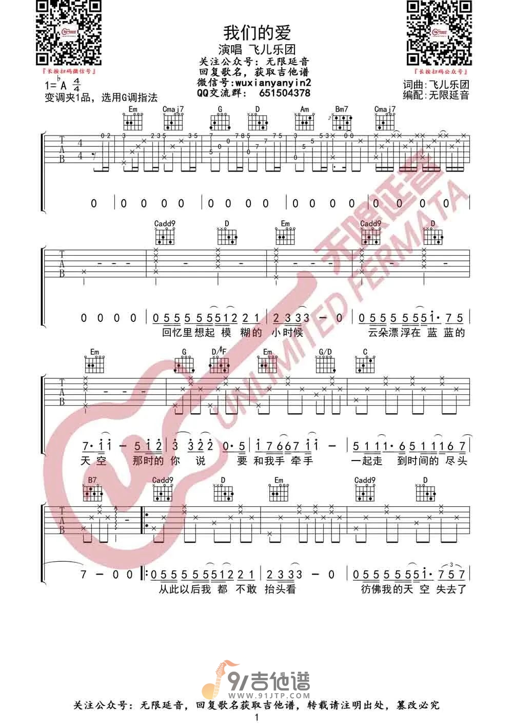我们的爱吉他谱 - G调吉他弹唱谱 - 原版