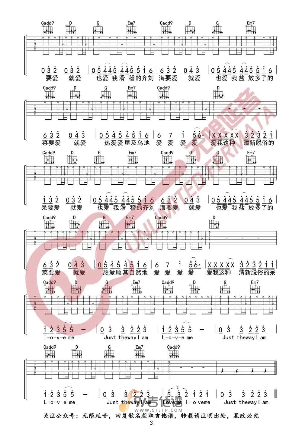 曲谱介绍: 曲谱简介:《嘿关于爱》吉他谱 阿肆原版吉他弹唱六线谱,《嘿!关于爱》是由阿肆作词作曲并演唱的一首歌曲,爱不是去被迫改变。齐刘海怎么了?做菜黑暗料理怎么了?所有借口,全部拿去嘿!喂!狗!歌曲诙谐幽默地表达除了顺其自然生活,顺其自然写歌,不被迫有趣,做自己的态度。歌曲原调为降B调,这里采用了G调指法进行编配,演唱时夹变调夹3品可回到原调。