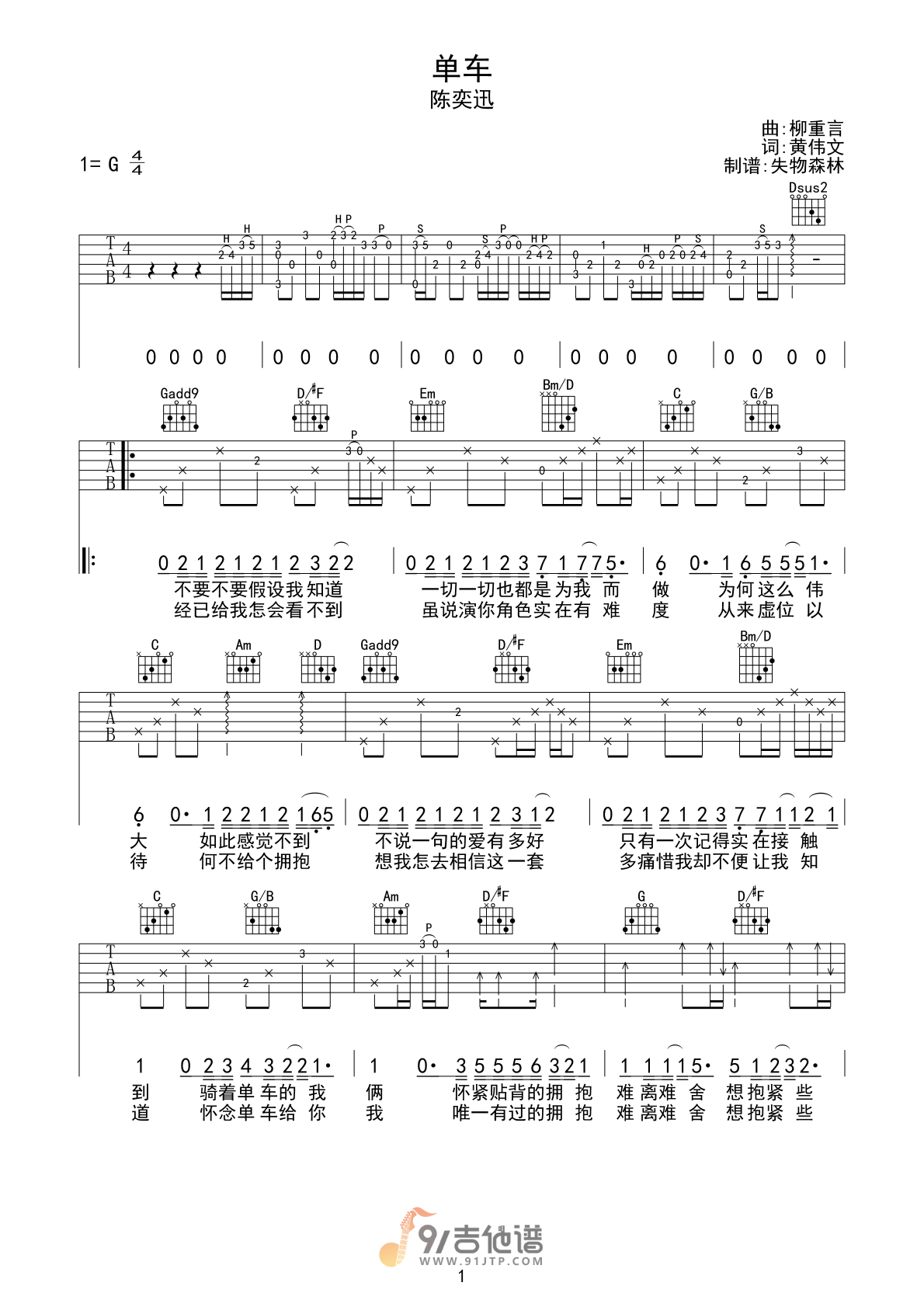 单车吉他谱 - G调吉他弹唱谱 - 原版