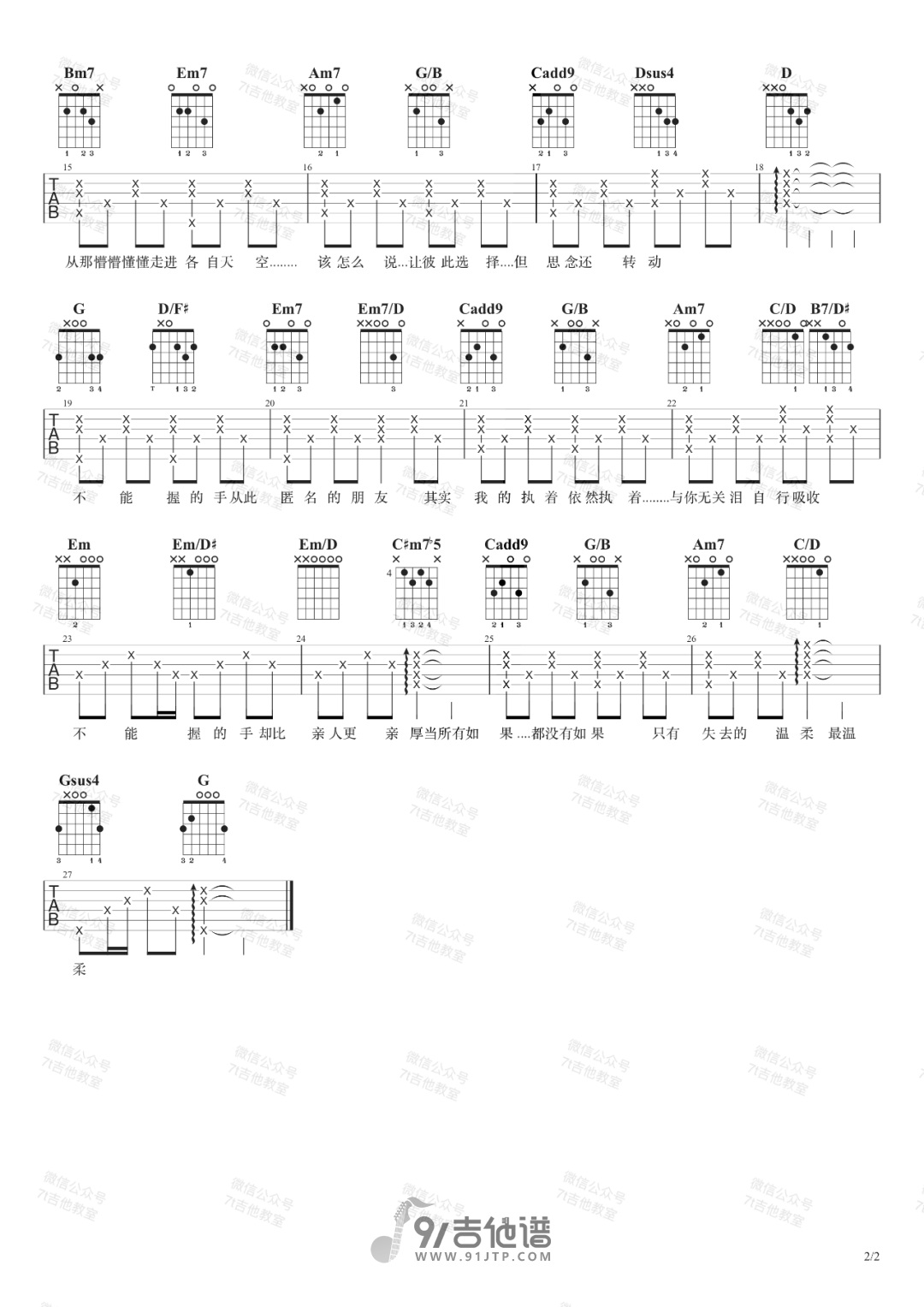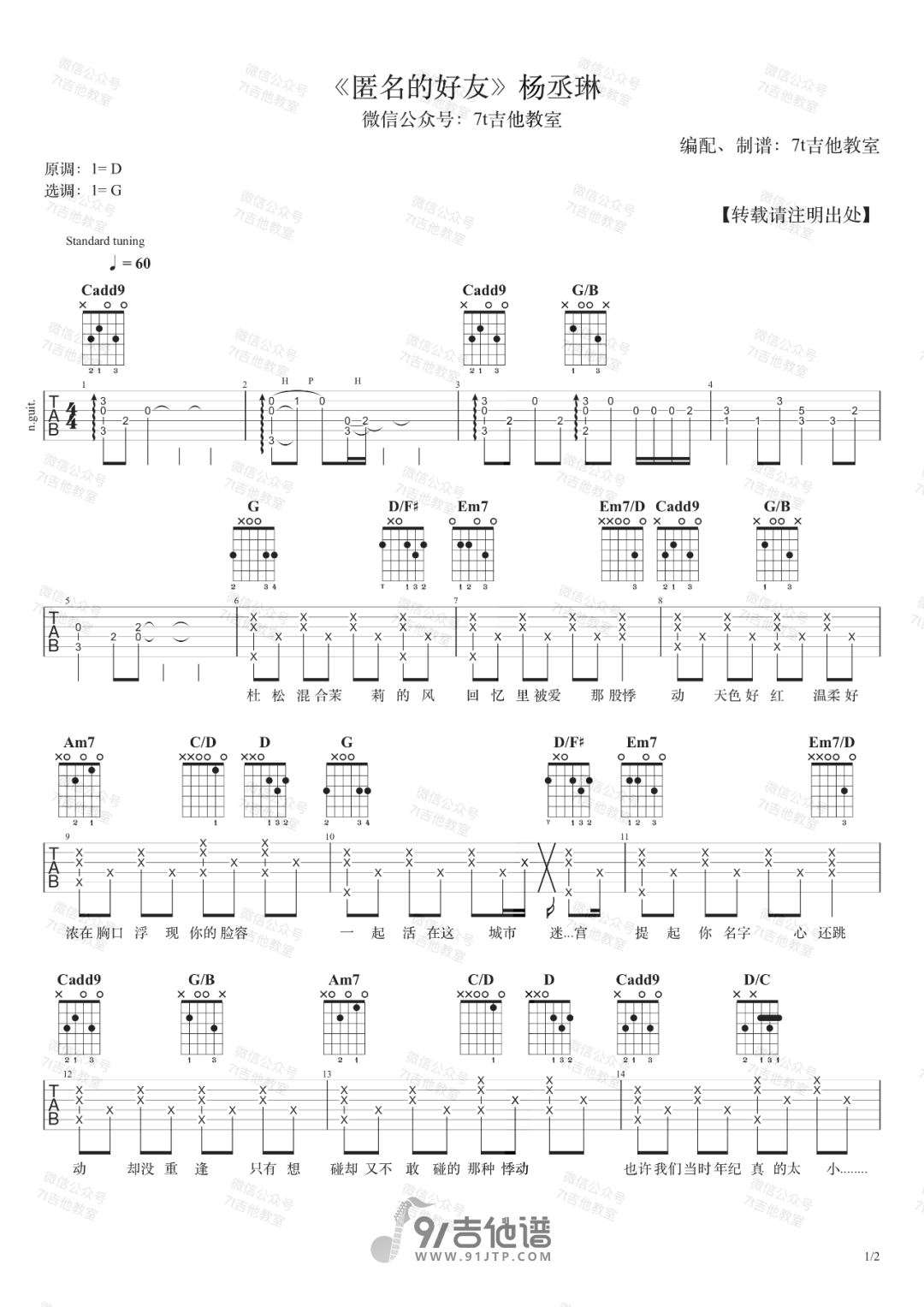匿名的好友吉他谱 - G调吉他弹唱谱 - 原版