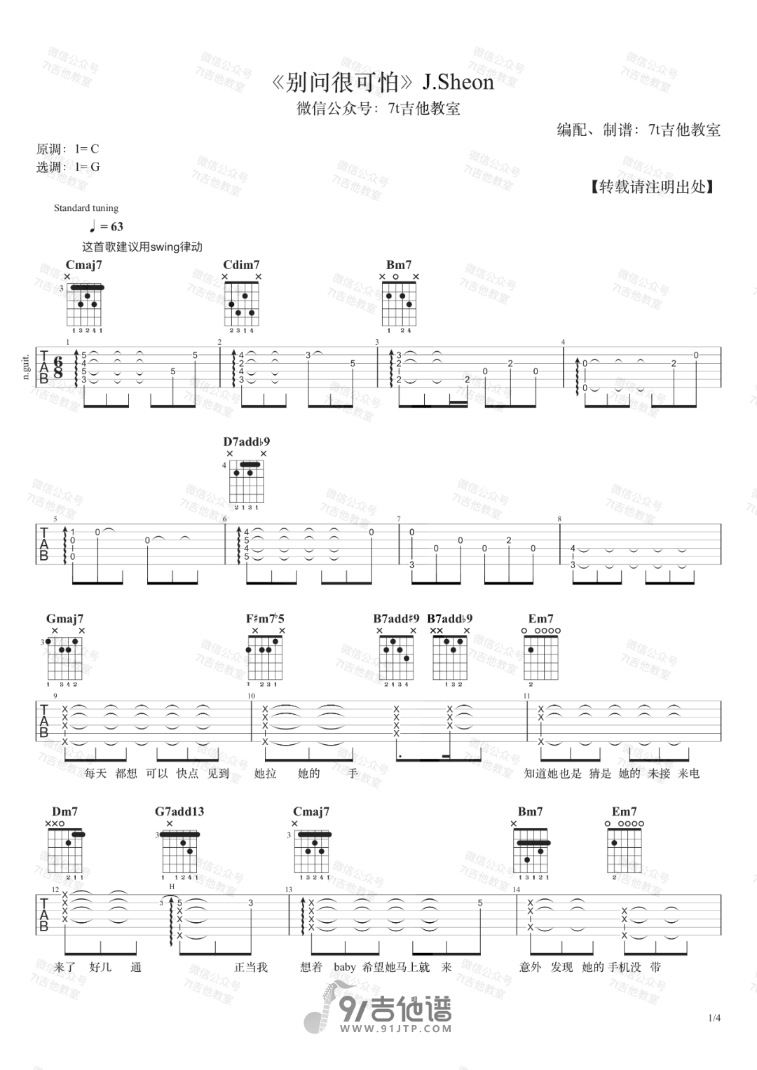 别问很可怕吉他谱 - G调吉他弹唱谱 - 原版