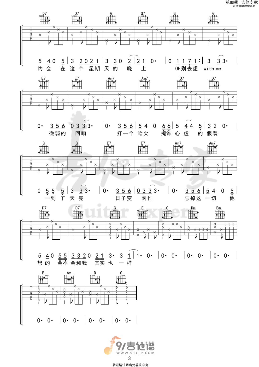 约会在星期天晚上吉他谱 - G调吉他弹唱谱 - 原版
