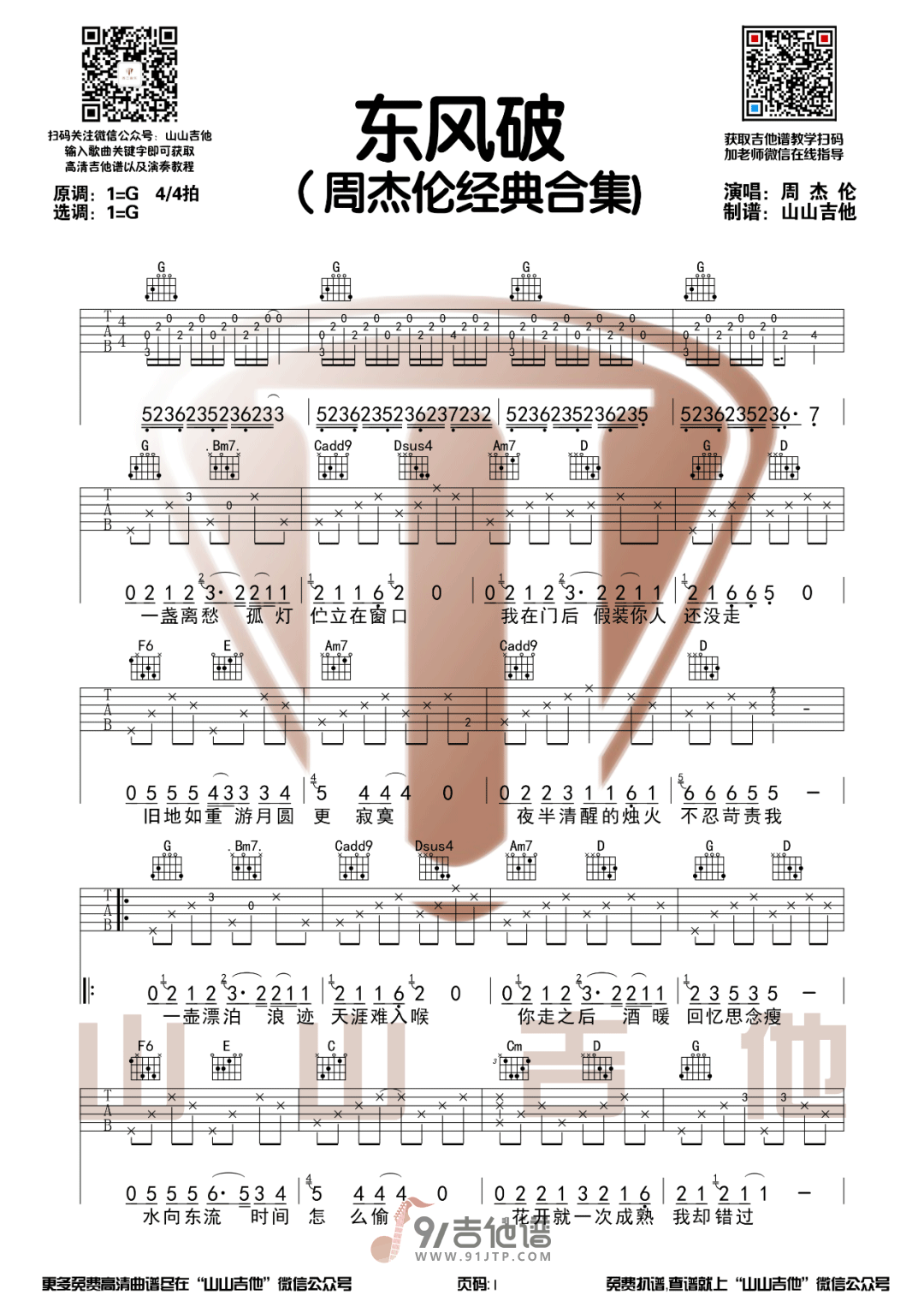 东风破吉他谱 - G调吉他弹唱谱 - 原版