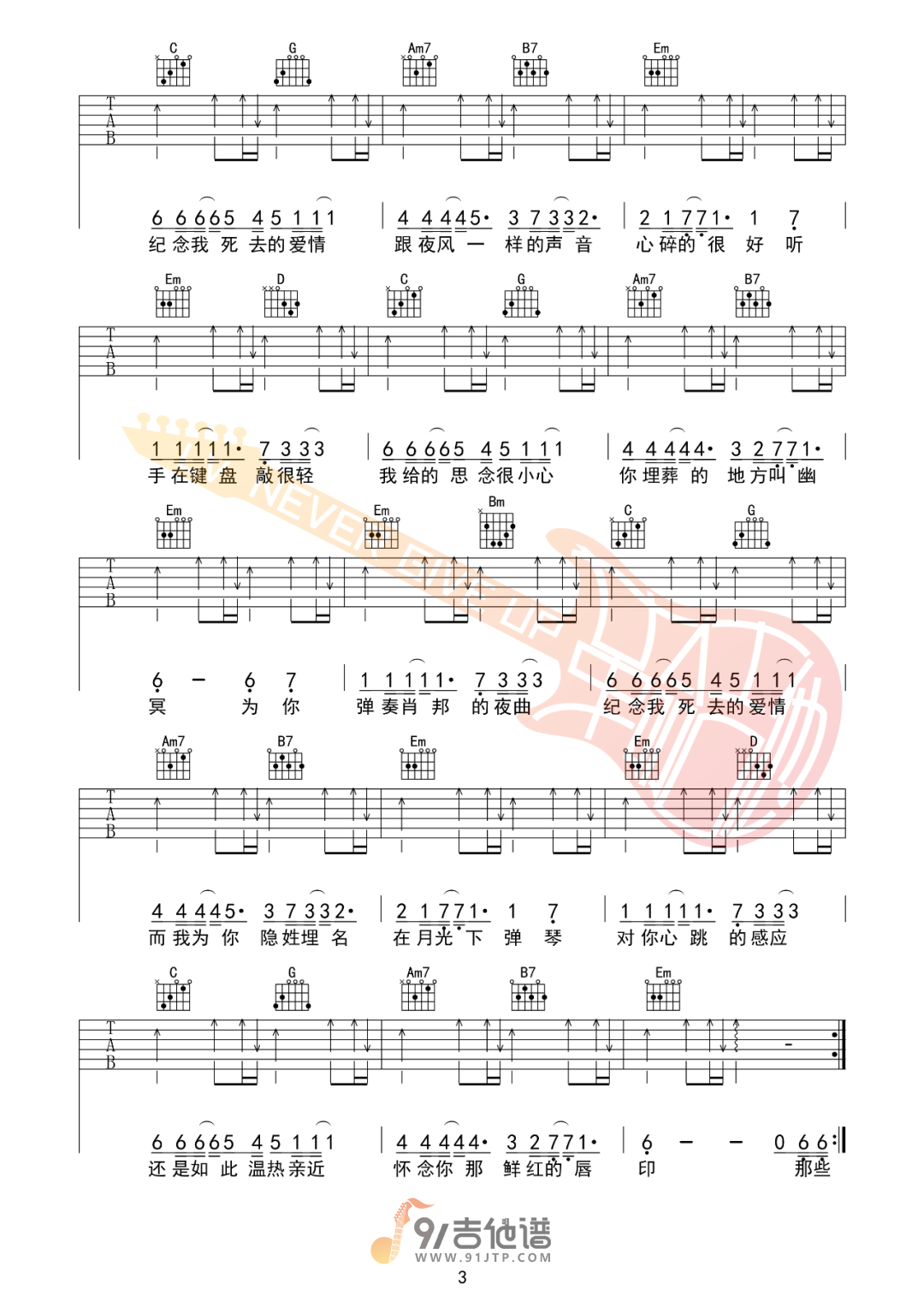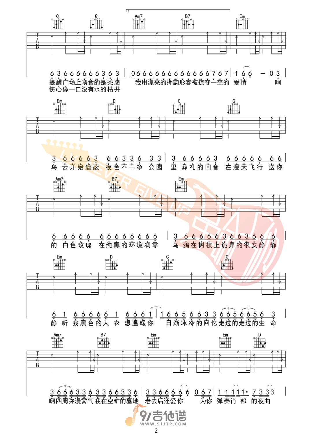 夜曲吉他谱 - G调吉他弹唱谱 - 原版