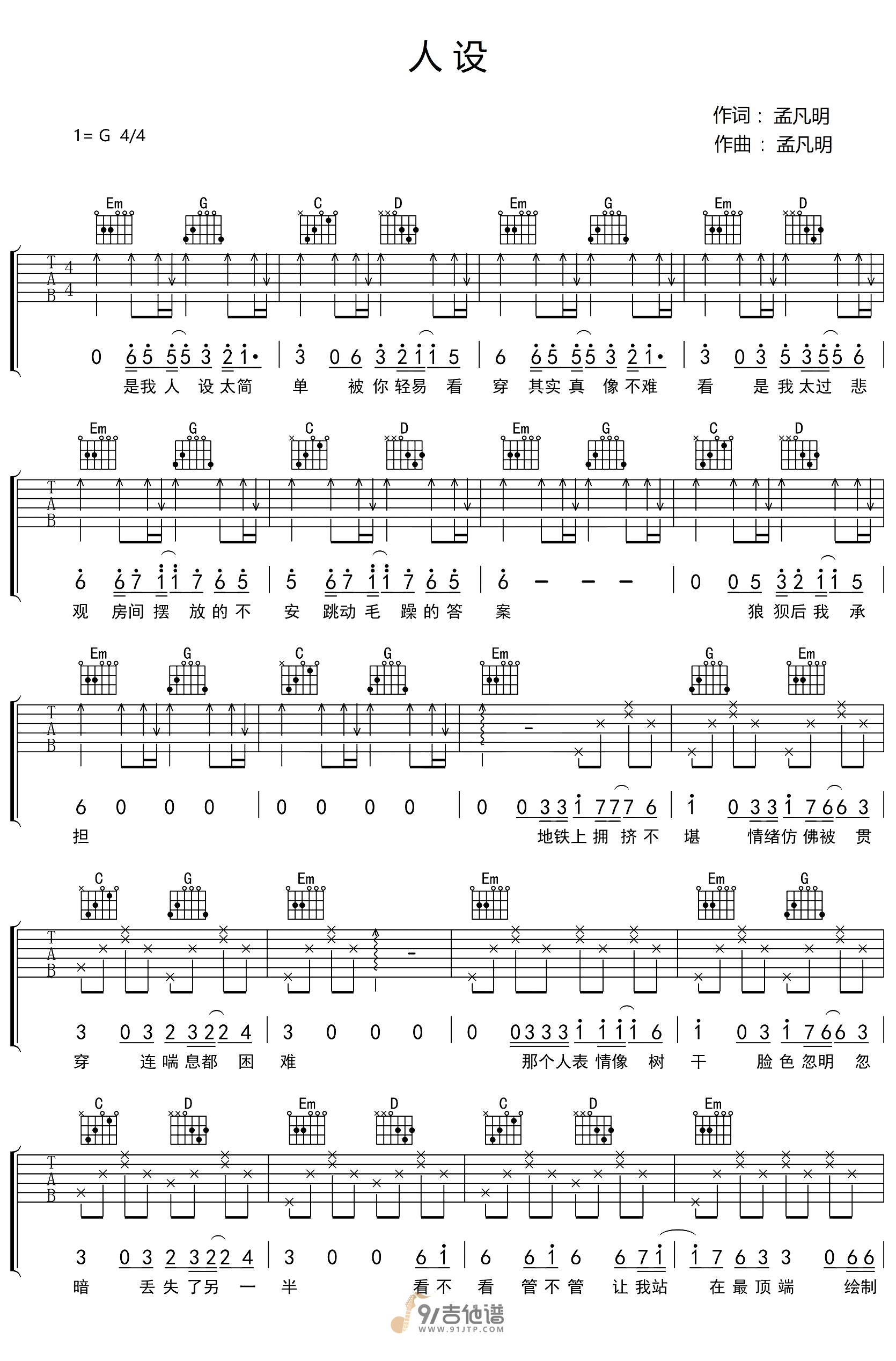 人设吉他谱 - 孟凡明 - G调吉他弹唱谱 - 原版