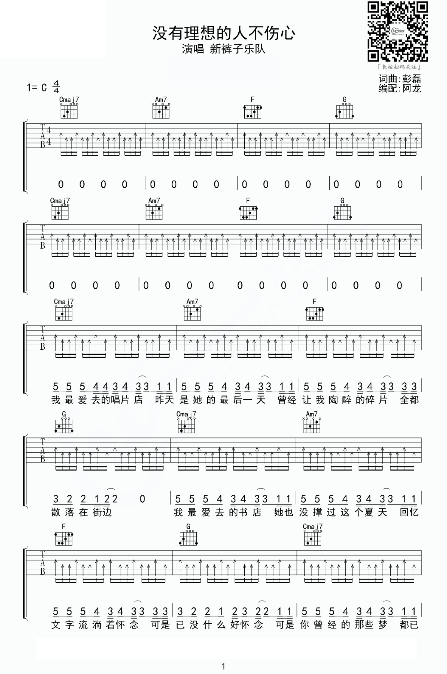 没有理想的人不伤心吉他谱 - 新裤子乐队 - C调吉他弹唱谱