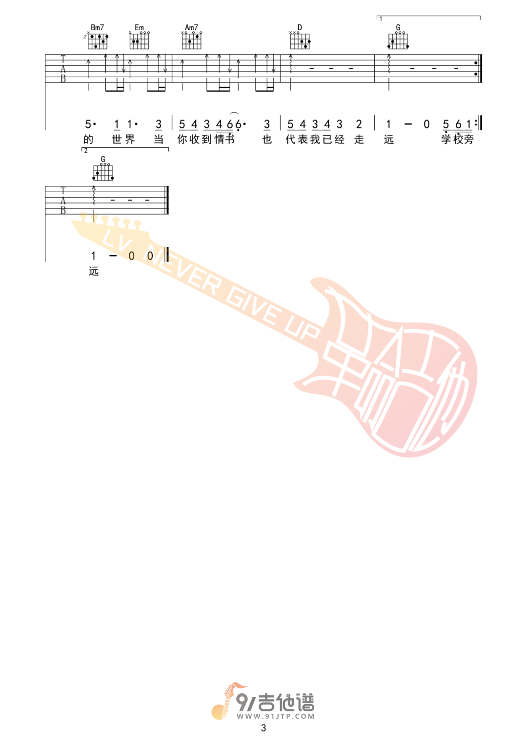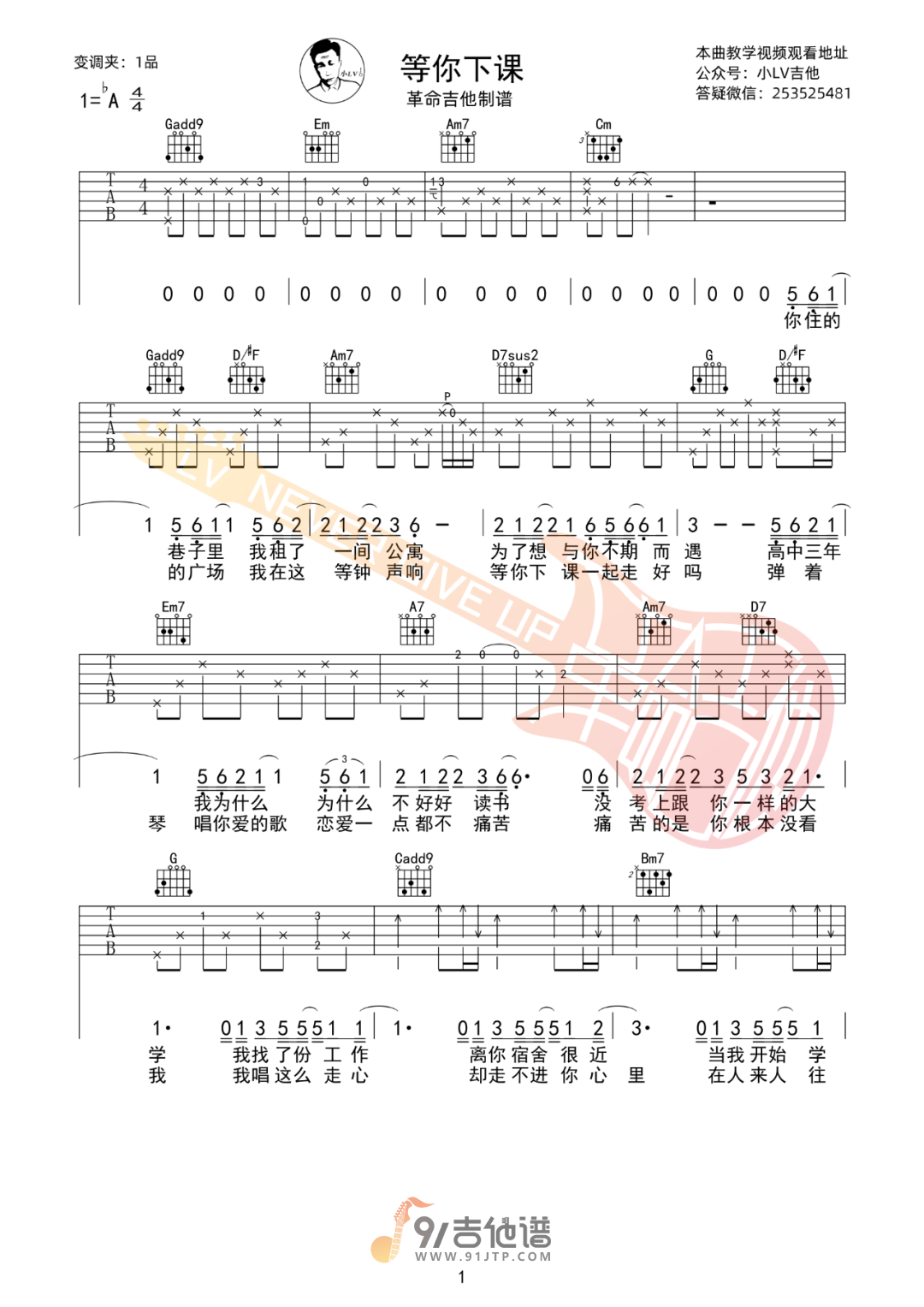 等你下课吉他谱 - G调吉他弹唱谱 - 原版