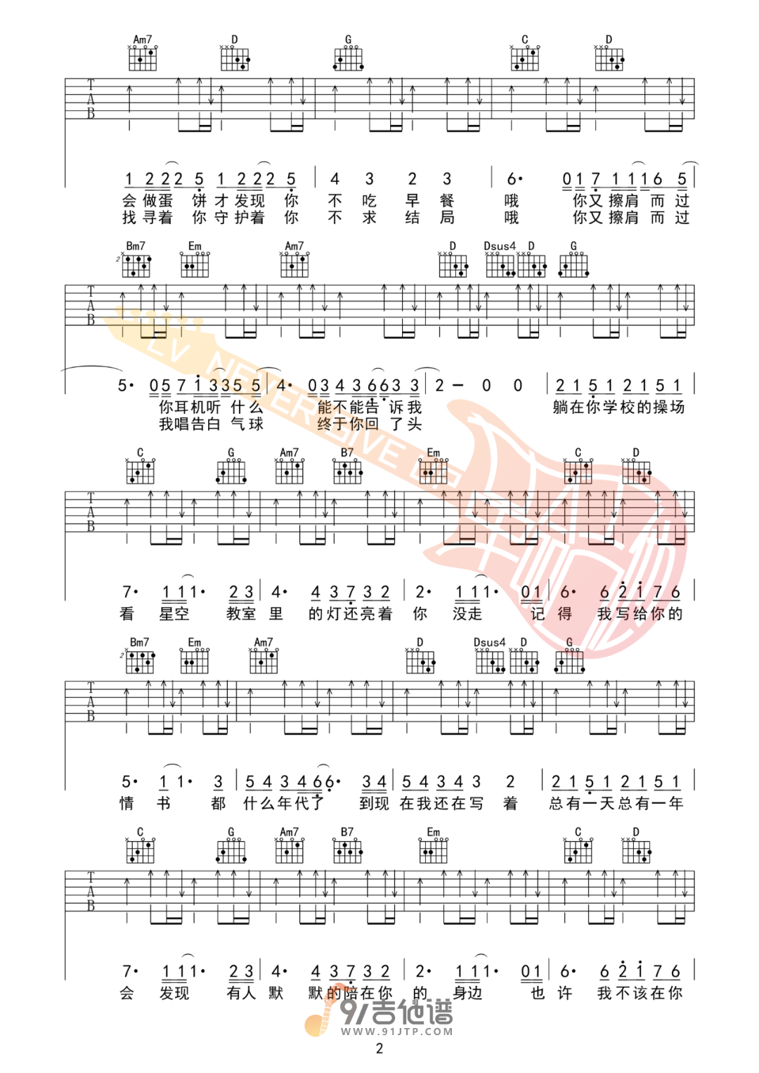 曲谱介绍: 曲谱简介:《等你下课》吉他谱 周杰伦原版吉他谱 附带吉他弹唱教学,《等你下课》是由周杰伦作词作曲并与杨瑞代合唱的一首校园情歌,周杰伦每一首歌都像在唱着我们的青春片段,就好比这一首《等你下课》。歌曲节奏轻快,像极了中学时代我们那带着青春愁绪却每天都优哉游哉的生活,这首歌也让人想起了中学时代那些单纯美好的情愫。